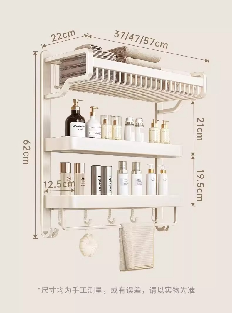 • 두꺼운/공간 알루미늄 + 3단 수건걸이 60 밀크 화이트(펀칭/펀칭 없음) 겸용 수건걸이