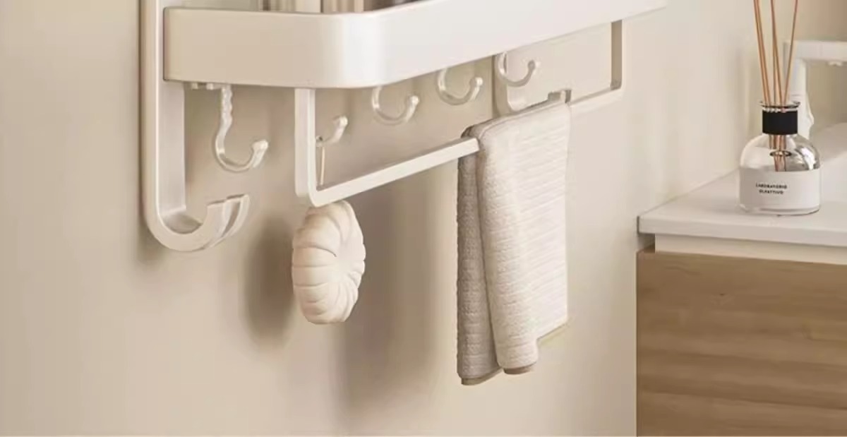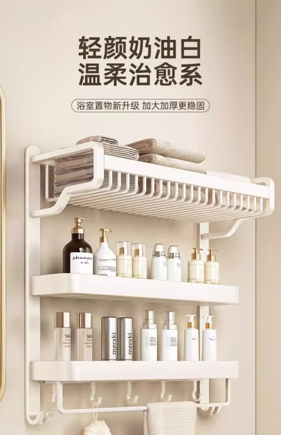 • 두꺼운/공간 알루미늄 + 3단 수건걸이 40 밀크 화이트(펀칭/펀칭 없음) 겸용 수건걸이