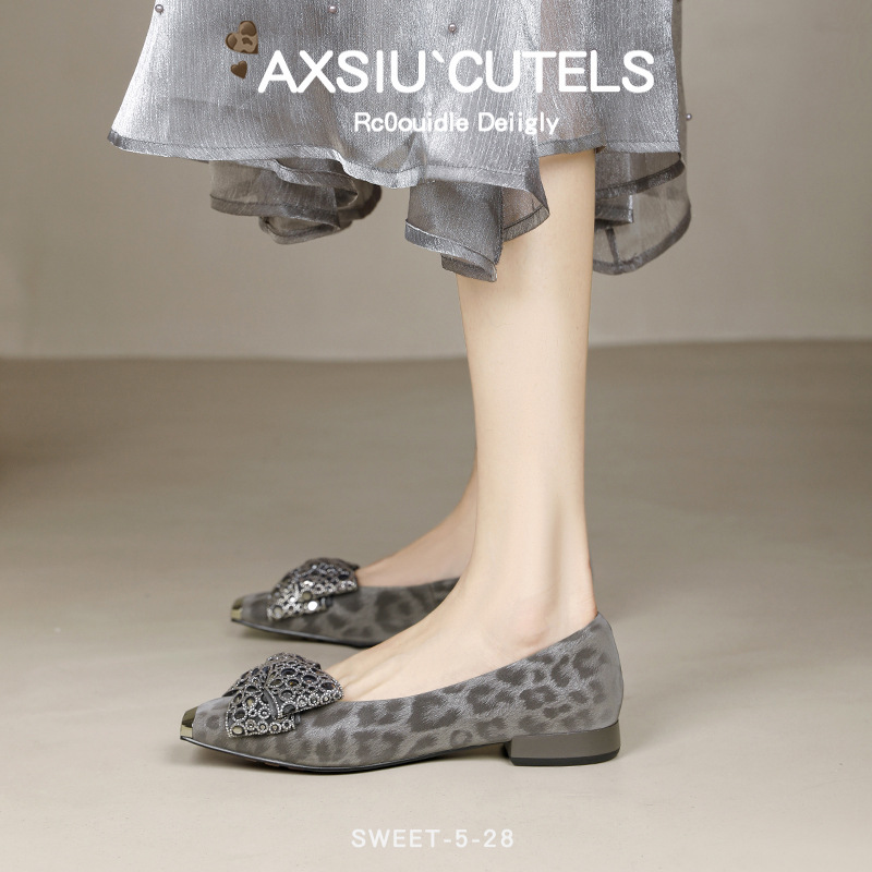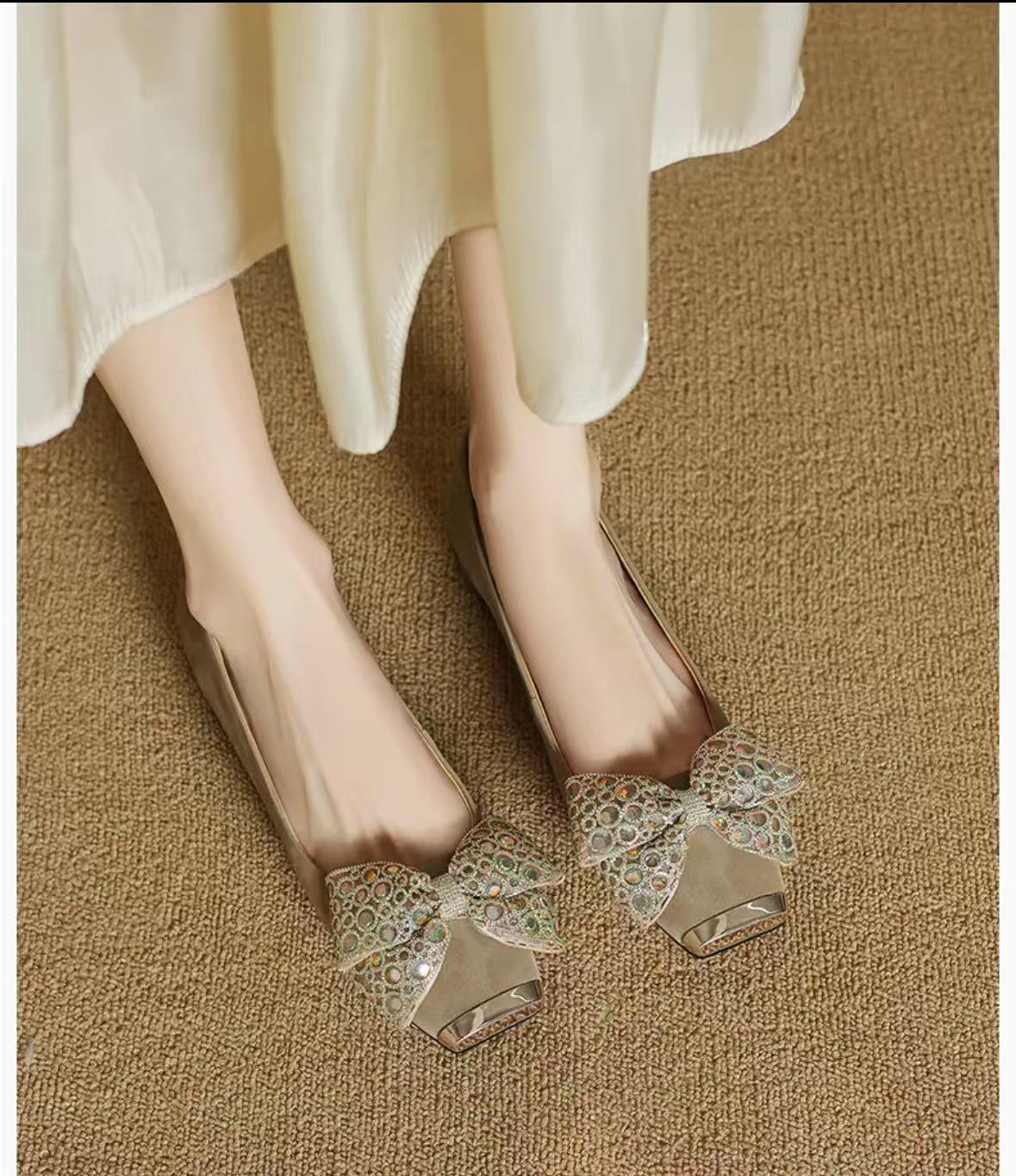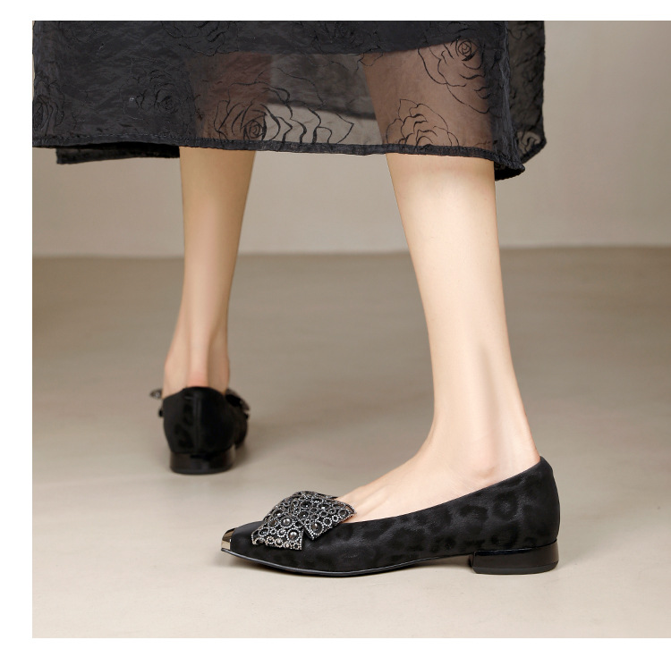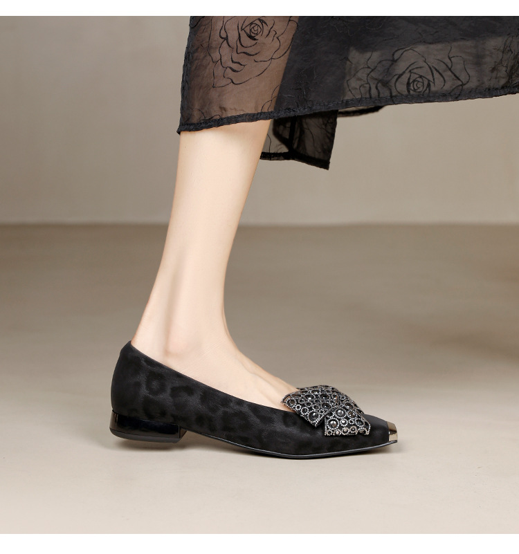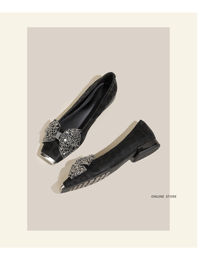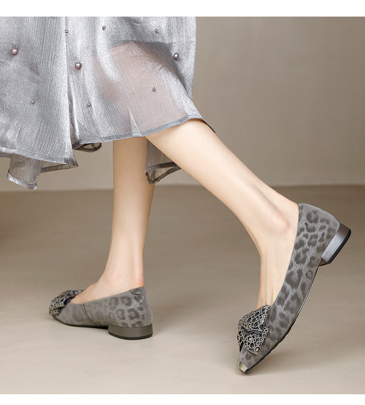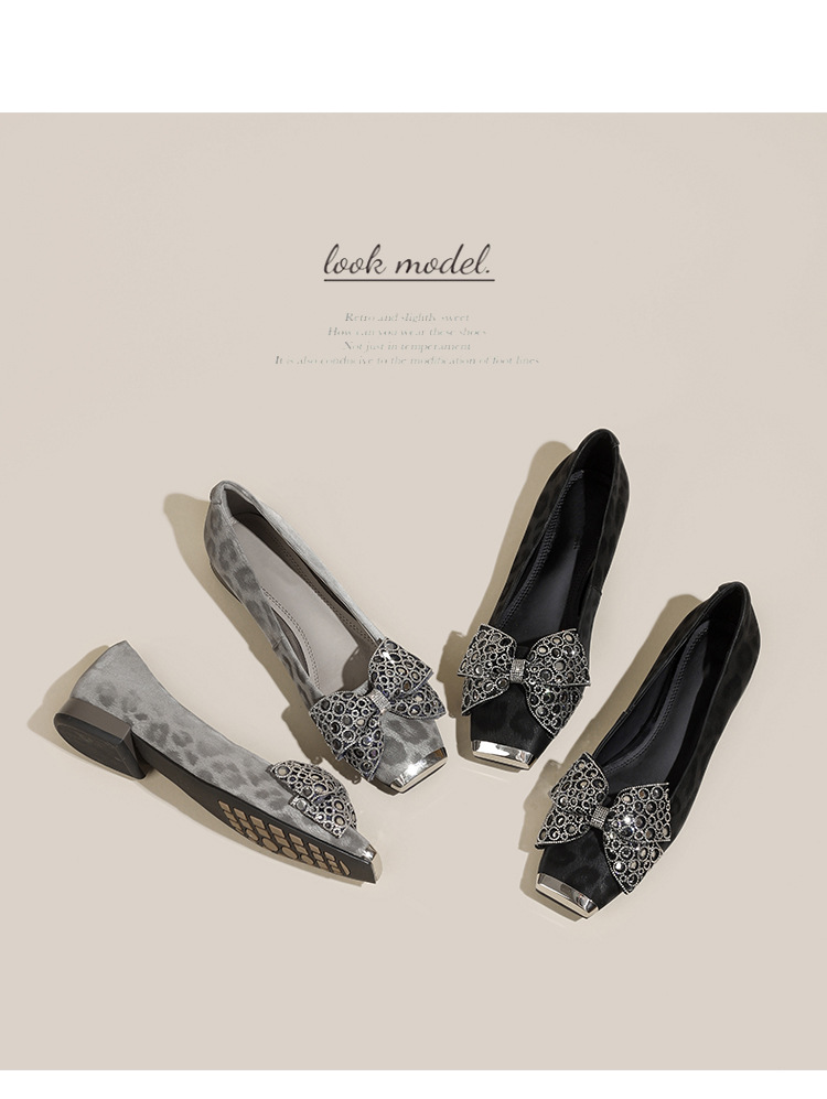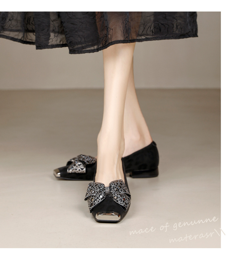 봄 2025 새로운 프랑스 스타일 복고풍 활 금속 광장 발가락 얕은 입 싱글 레이어 신발 소프트 솔 슬립 온 신발 두꺼운 힐스토어 가기