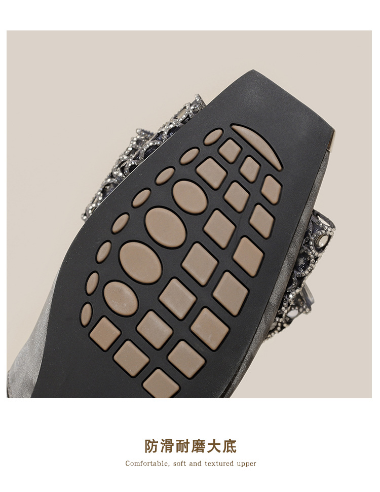 봄 2025 새로운 프랑스 스타일 복고풍 활 금속 광장 발가락 얕은 입 싱글 레이어 신발 소프트 솔 슬립 온 신발 두꺼운 힐