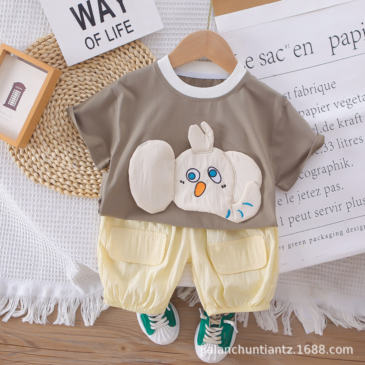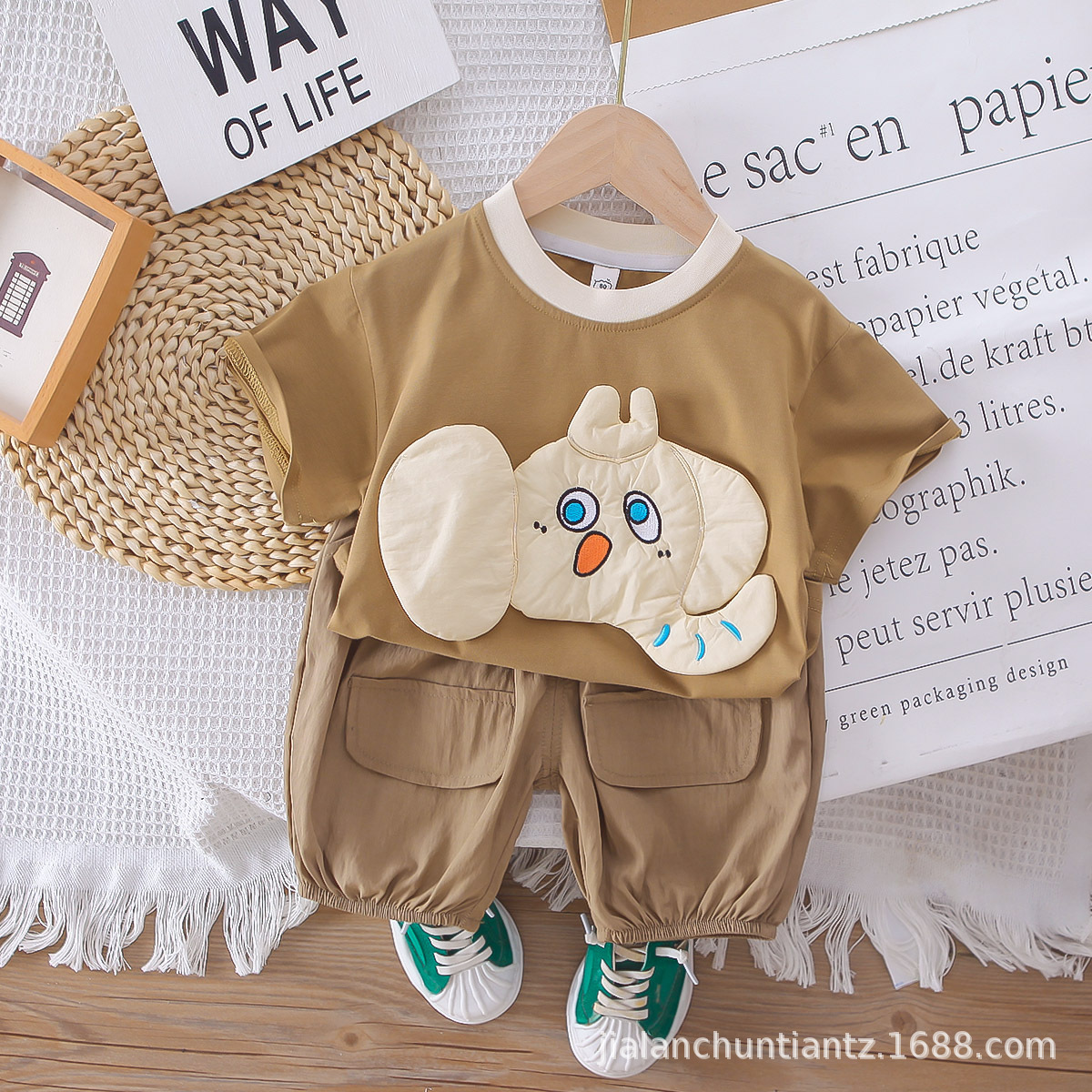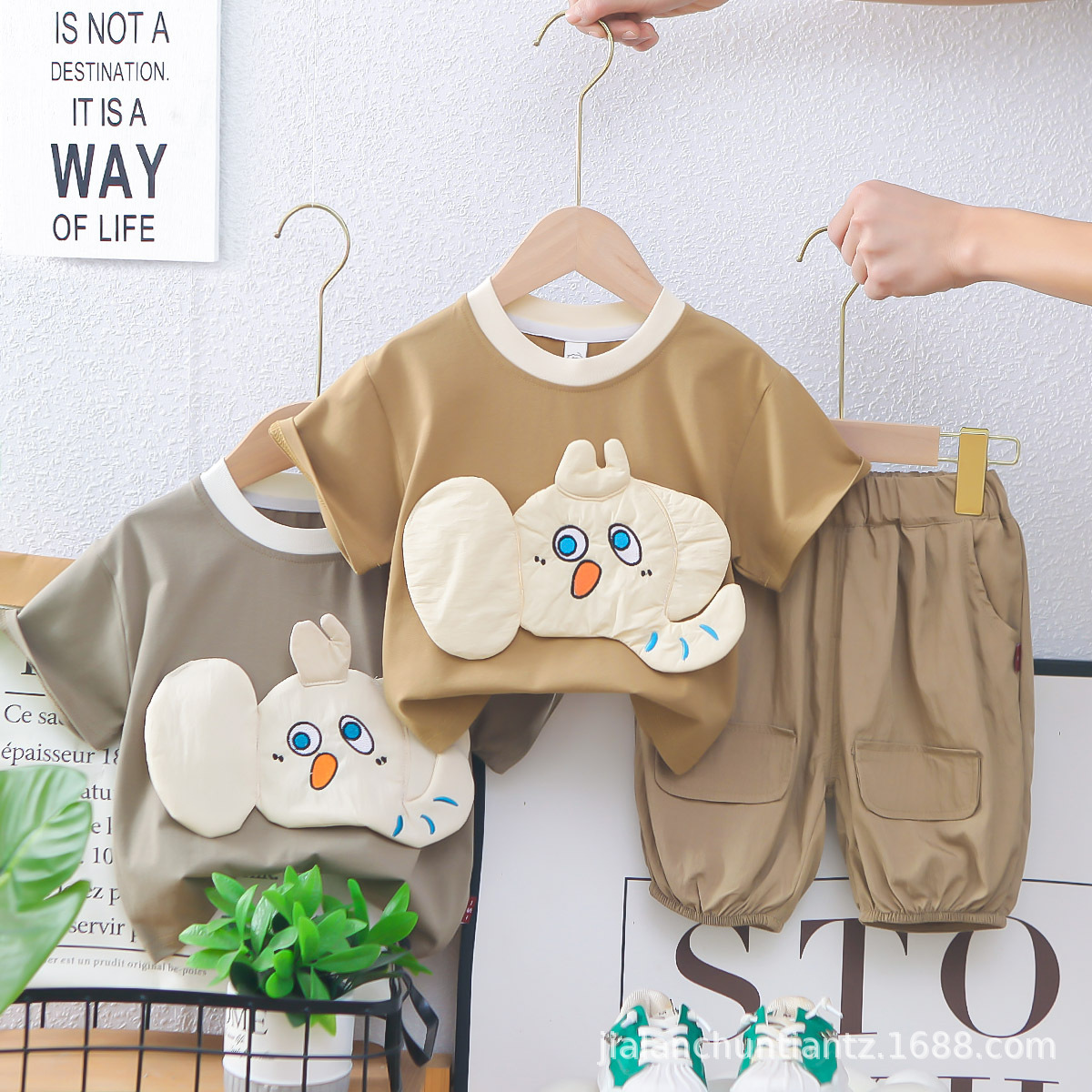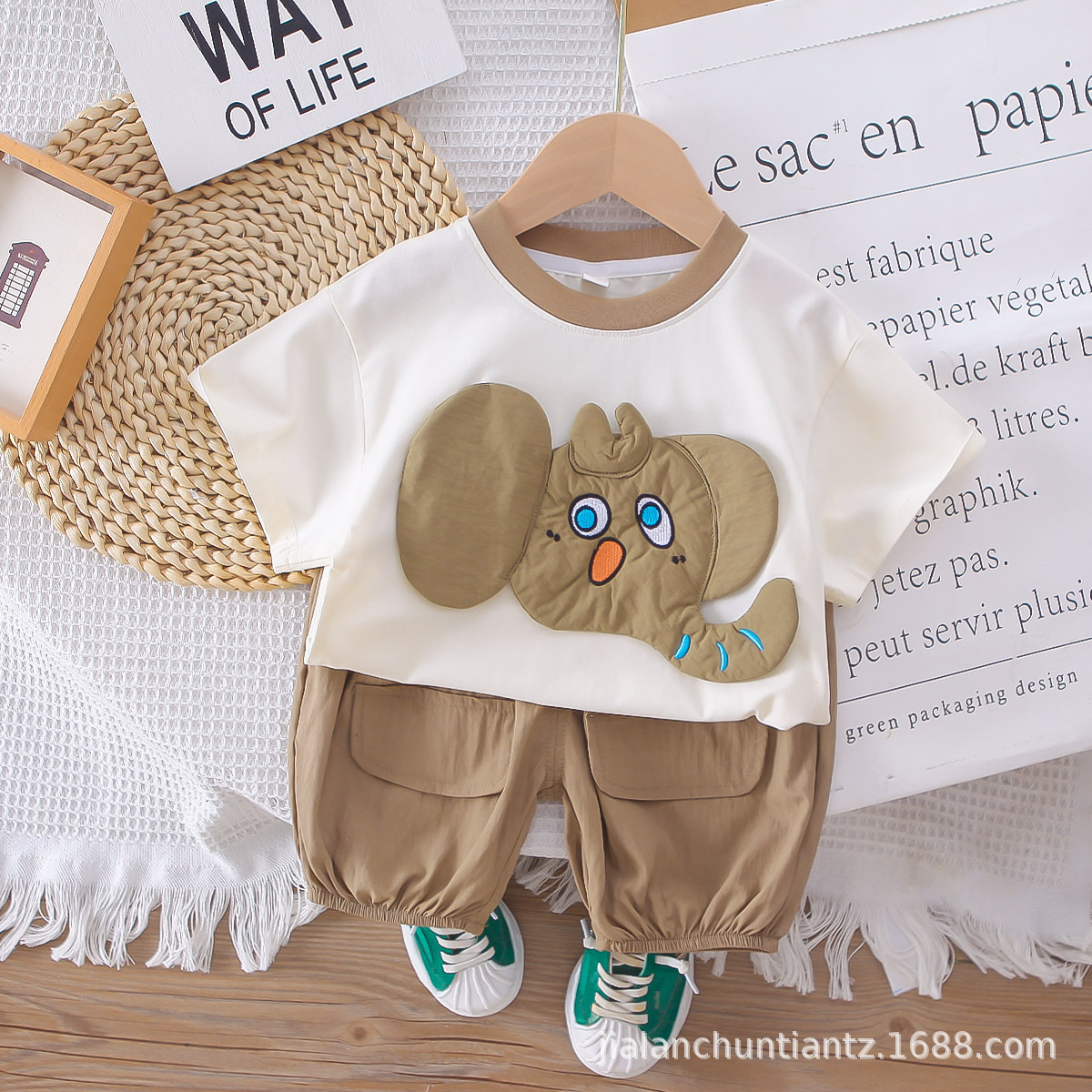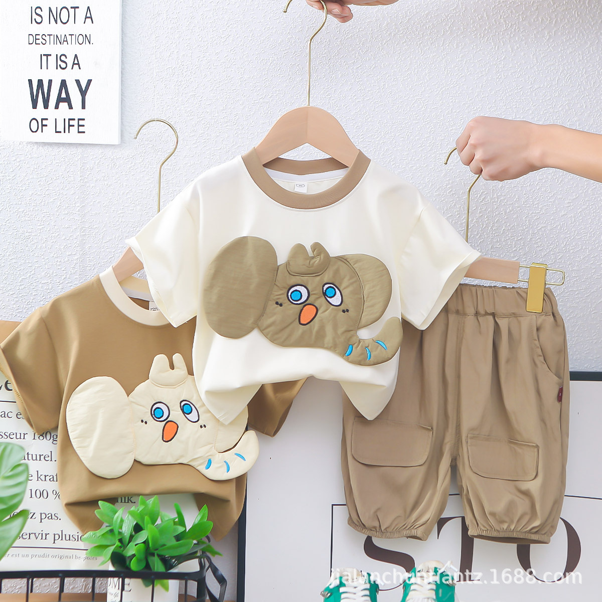 패션 만화 인형 아기 코끼리 어린이 소년 반팔 티셔츠 여름 코튼 새로운 느슨한 큰 어린이 올 매치 여름 원피스