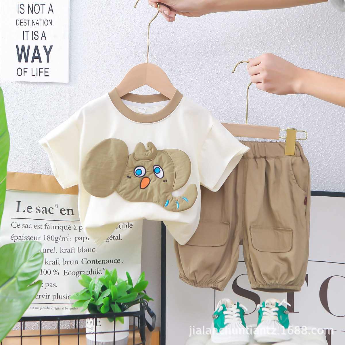 패션 만화 인형 아기 코끼리 어린이 소년 반팔 티셔츠 여름 코튼 새로운 느슨한 큰 어린이 올 매치 여름 원피스스토어 가기