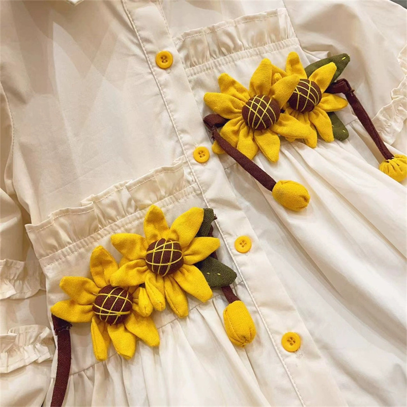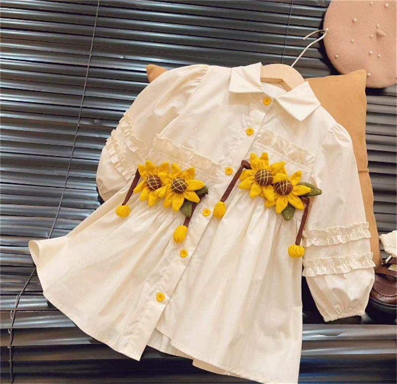 어린이 의류 소녀 긴 소매 원피스 해바라기 어린이 귀여운 치마 셔츠 원피스 아기 새 공주 원피스 어린이 치마스토어 가기