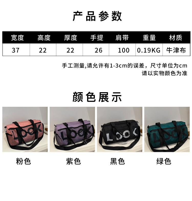 旅行包干湿分离运动瑜伽包2024秋季新款大容量短途旅行训练健身包
