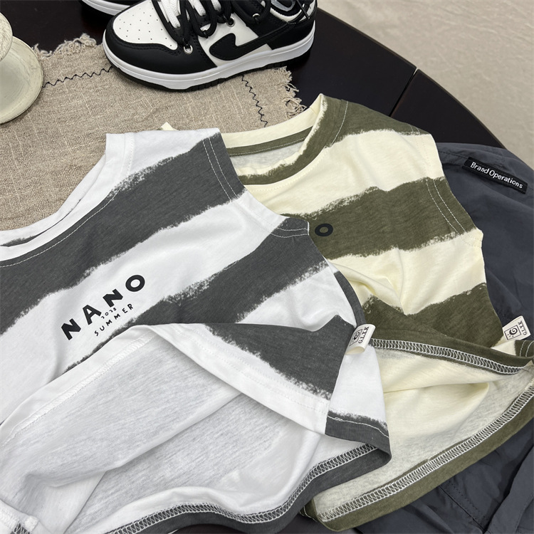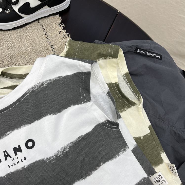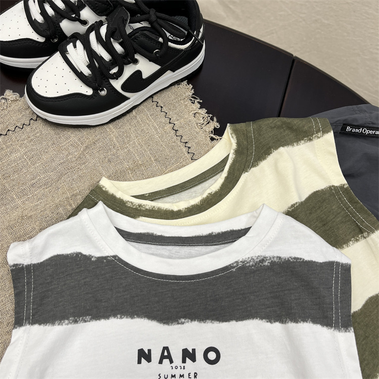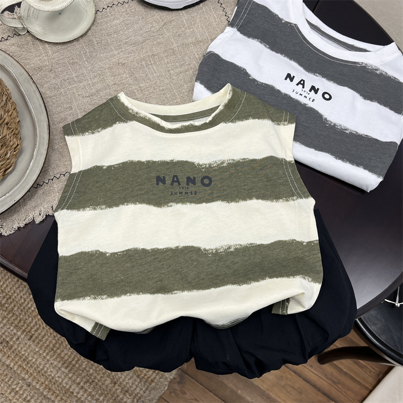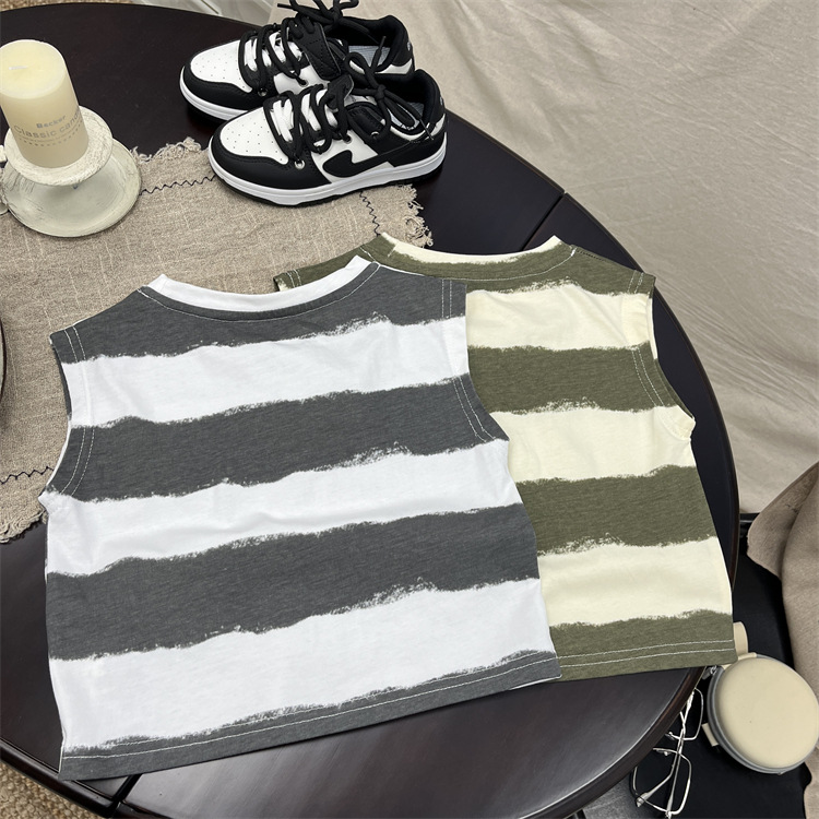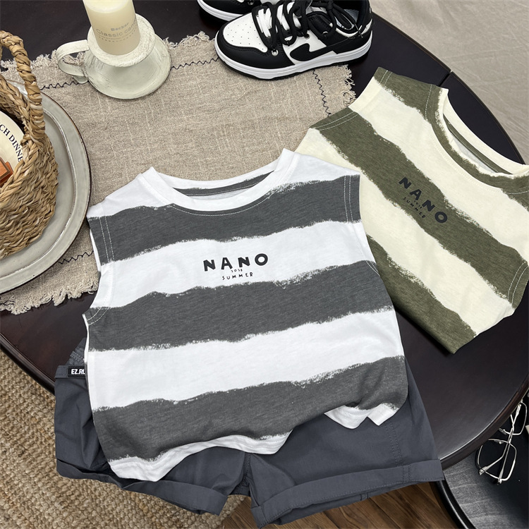소년 조끼 여름 어린이 민소매 최고 아기의 여름 한국식 얇은 줄무늬 허리 코트 소년의 여름 옷스토어 가기