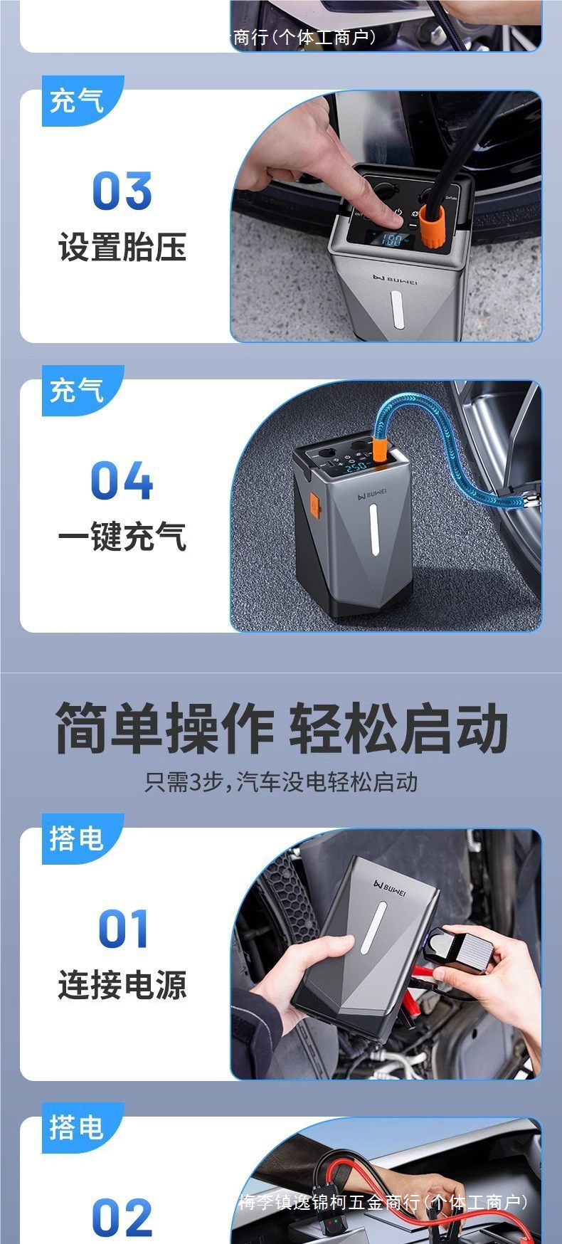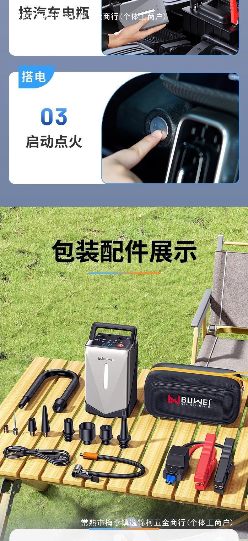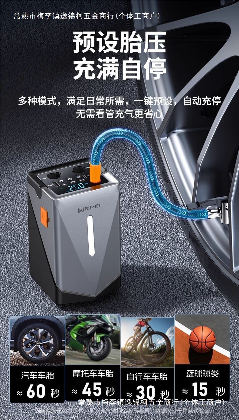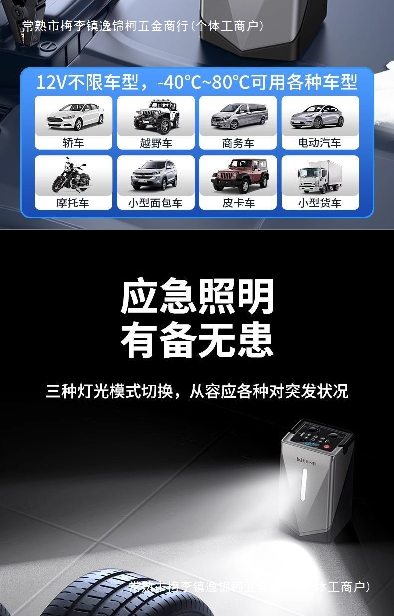 Buwei 자동차 비상 시작 전원 공급 장치 공기 펌프 다기능 차량 장착 통합 자동차 타기 전기 보물 송풍기스토어 가기