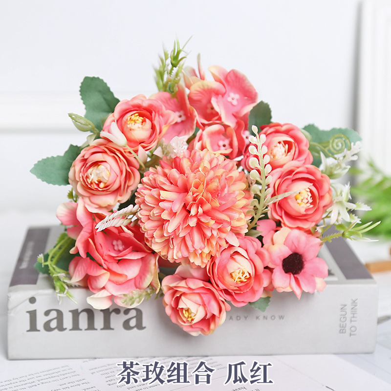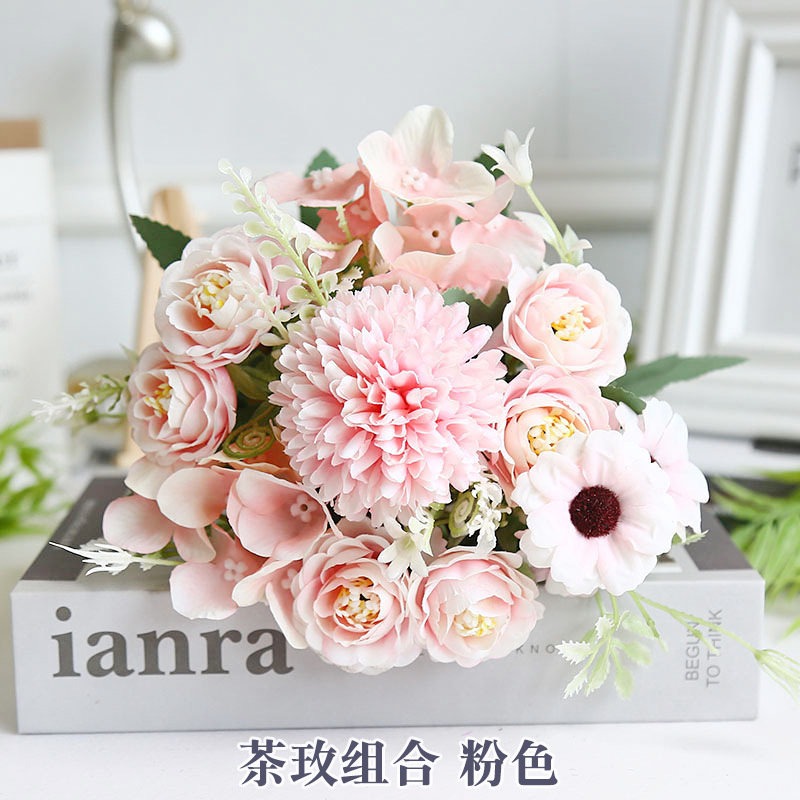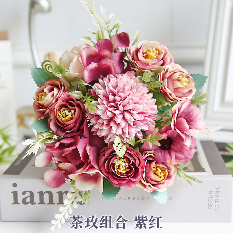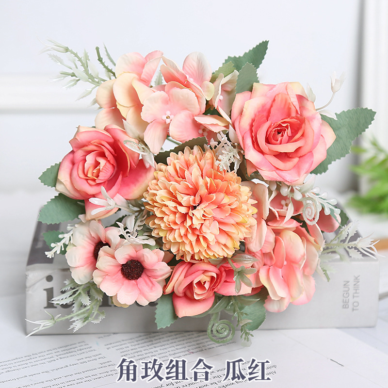 꽃 가짜 꽃다발 완성 된 장미 홈 장식품 웨딩 수제 헤어핀 꽃 DIY 장식 재료스토어 가기