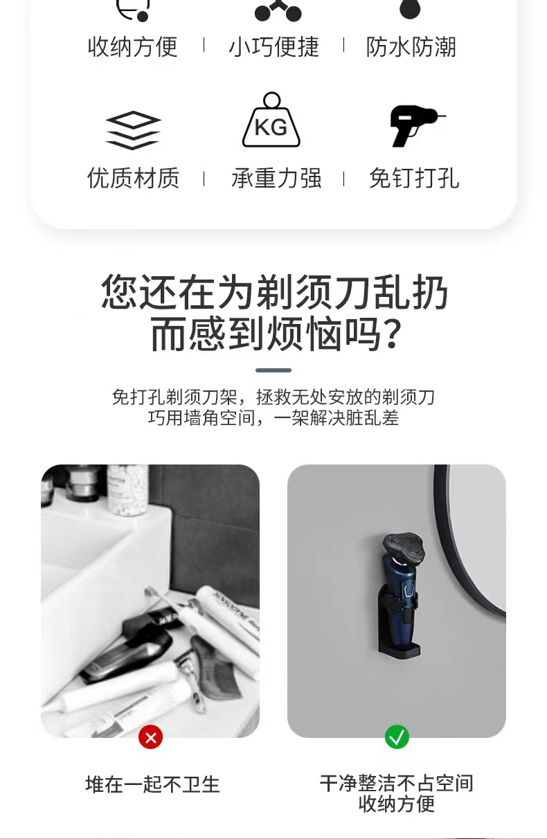 전기 면도기 홀더 펀치가없는 벽걸이 형 화장실 면도기 스토리지 랙 베이스 면도기 스토리지 랙