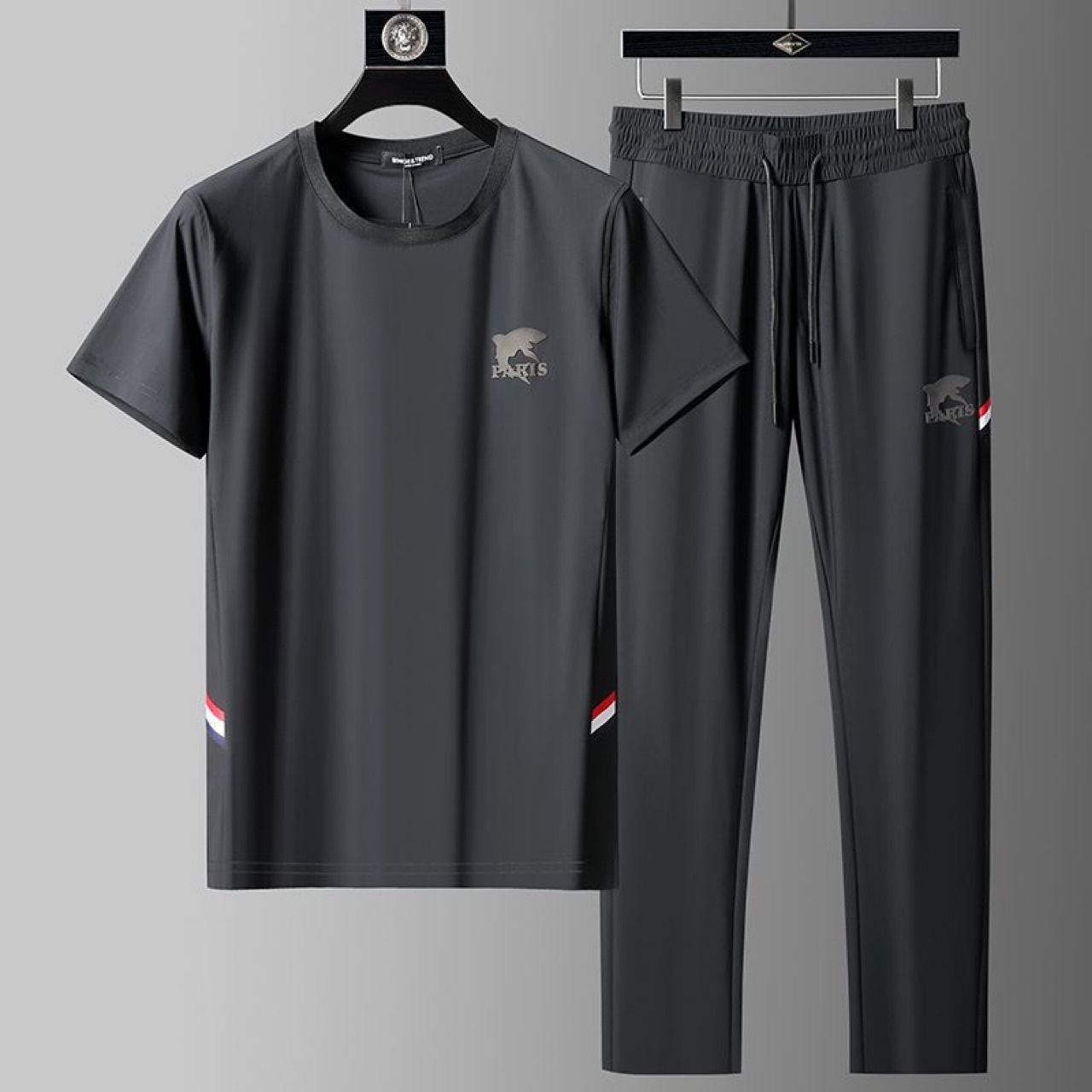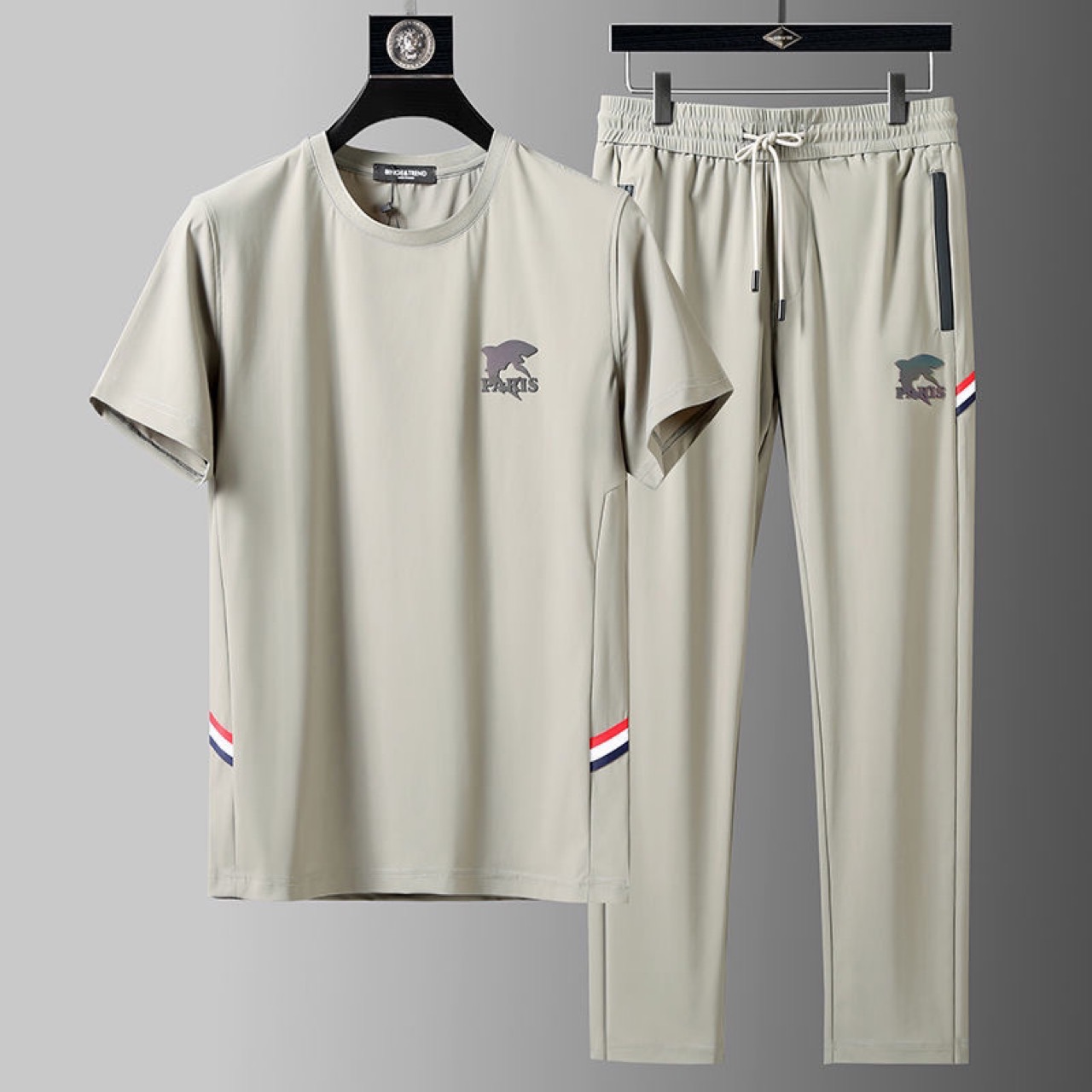홍콩 하이 엔드 실크 스트레치 아이스 실크 반팔 셔츠 투피스 세트 남자 여름 얇은 빠른 건조 스포츠웨어 세트