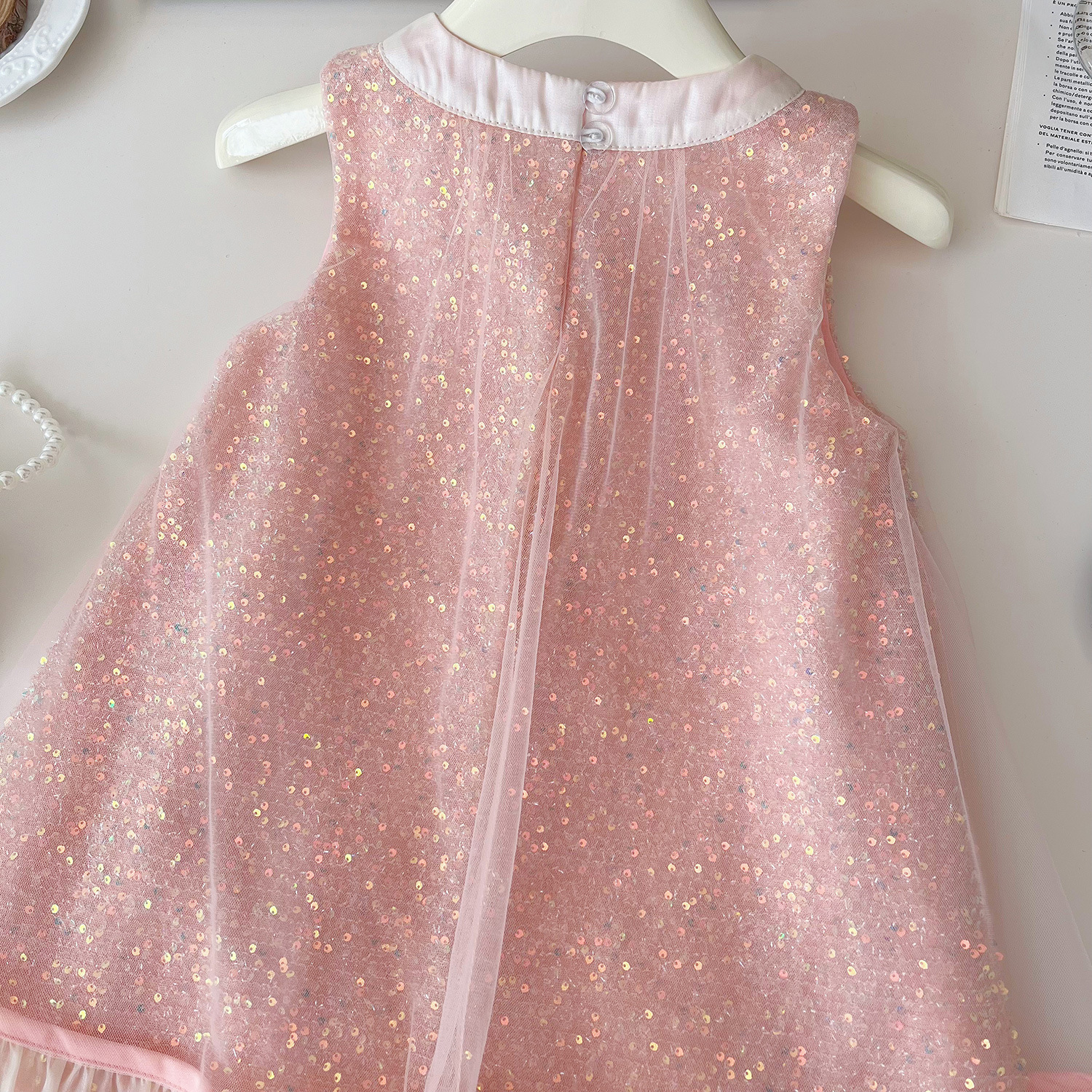 2025 여름 새 소녀 민소매 활 메쉬 원피스 소녀 귀여운 우아한 공주 원피스스토어 가기