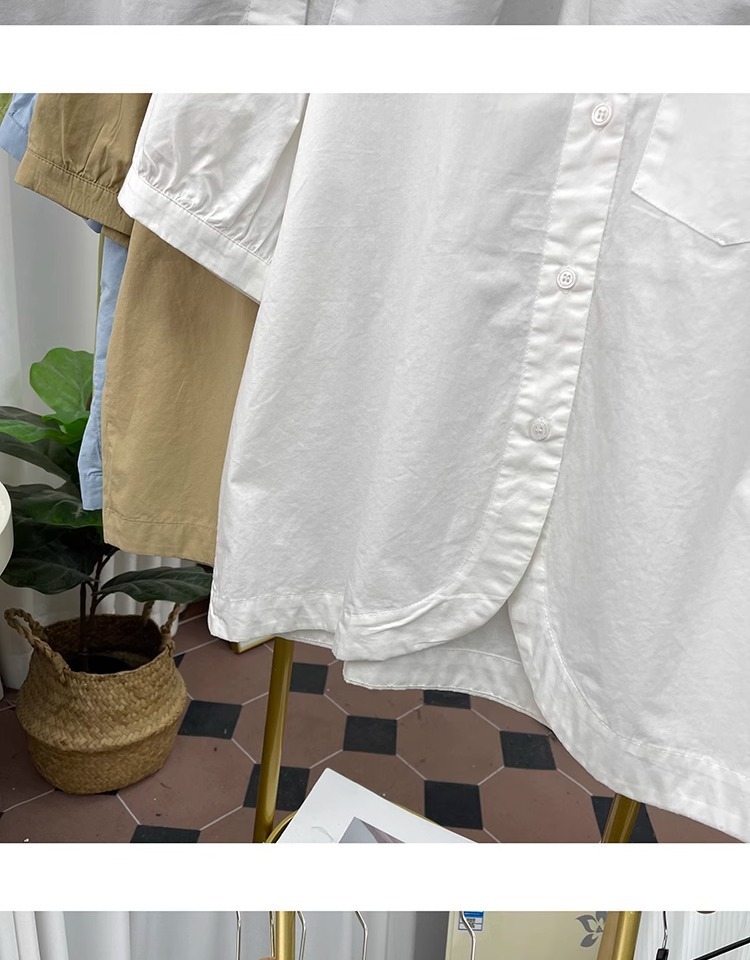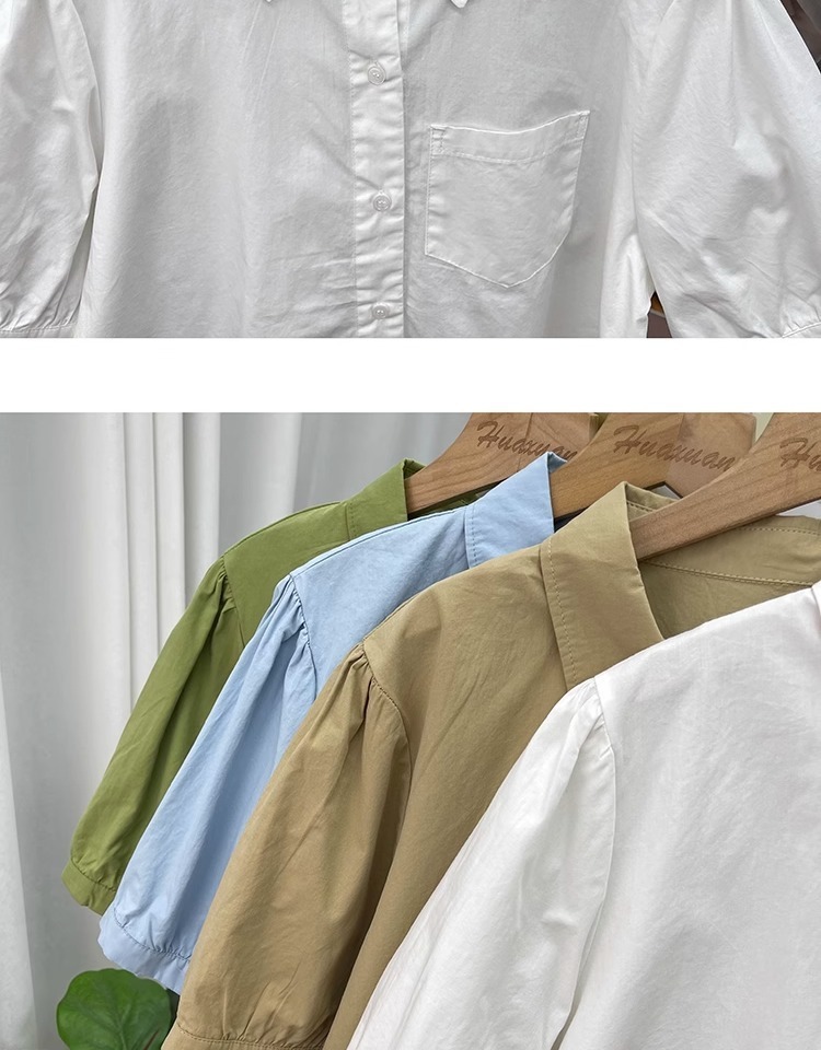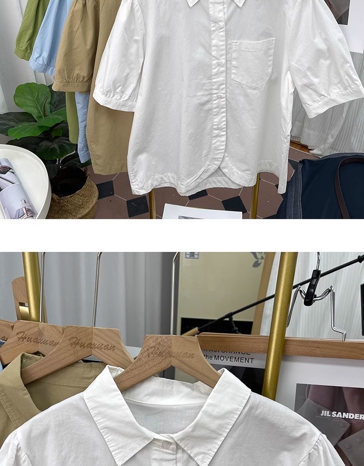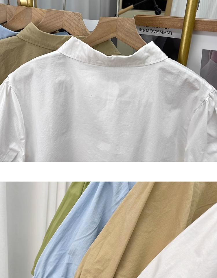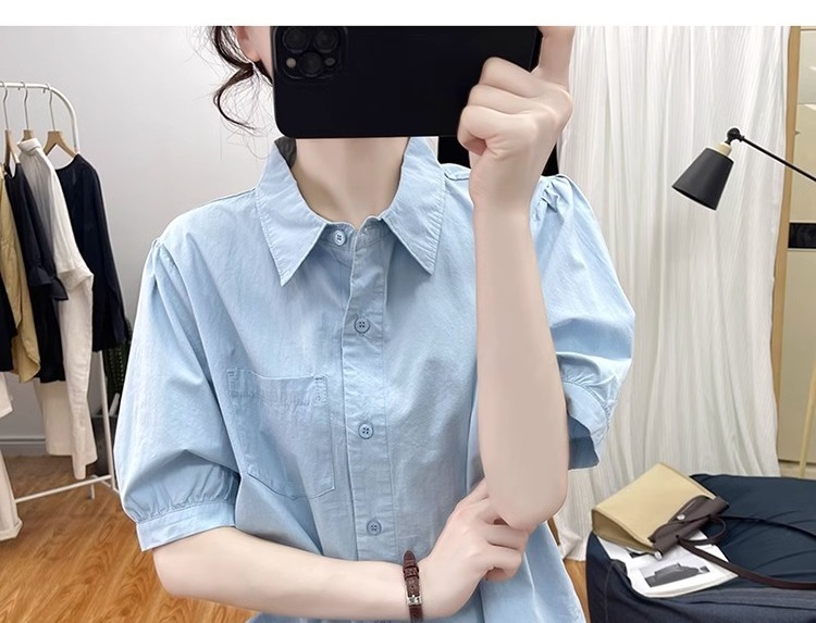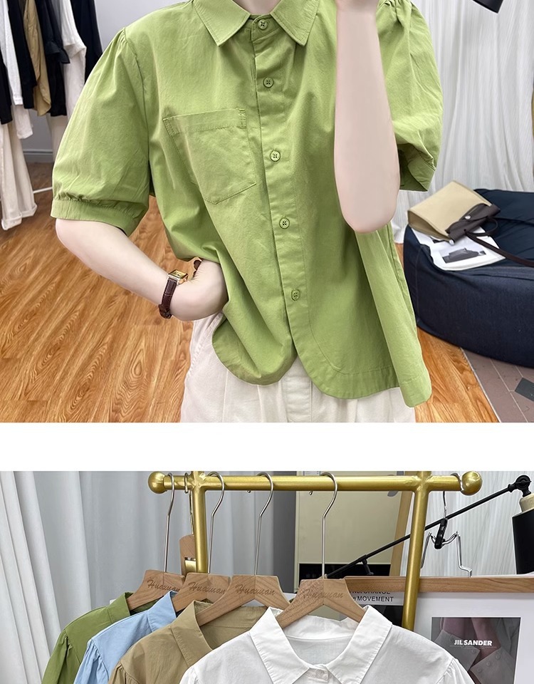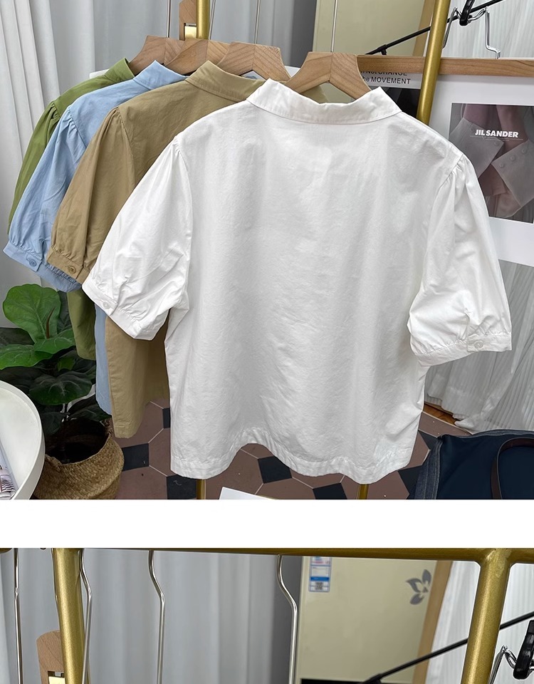 여름 디자인 퓨어 코튼 불규칙한 랜턴 소매 반팔 셔츠 여성의 나이를 줄이는 톱 2025 새 옷깃 셔츠스토어 가기