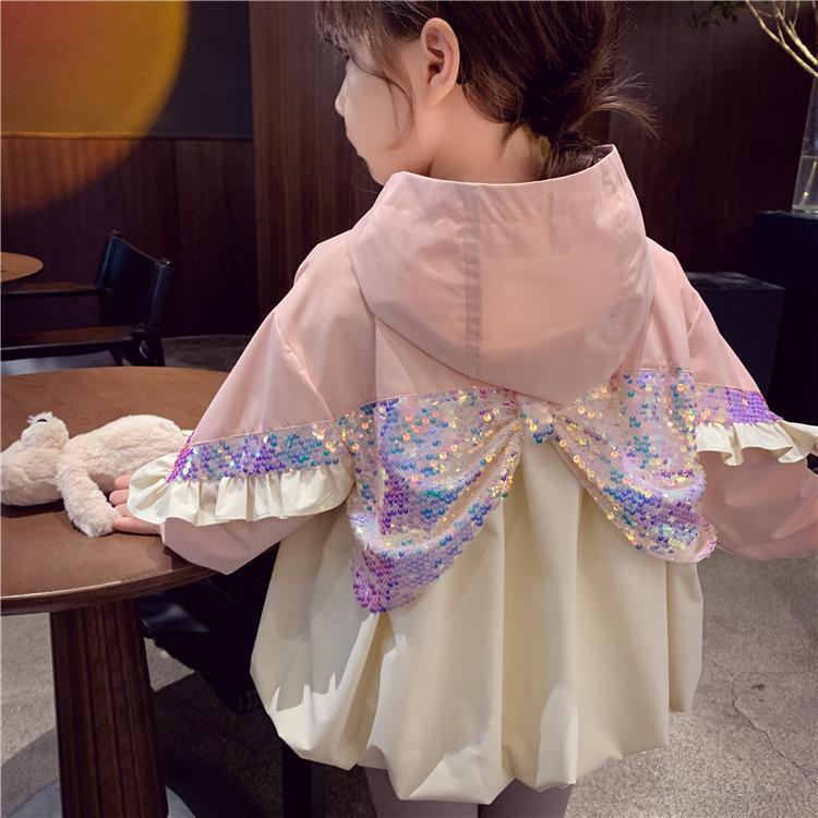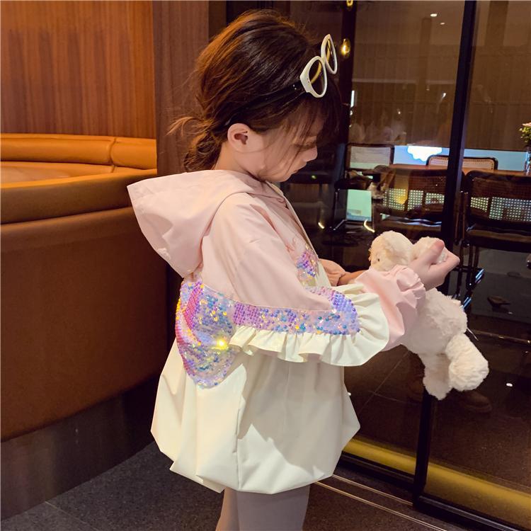 소녀 코트 가을 2025 새로운 어린이 서양식 탑 여성 봄과 가을 스팽글 활 코트 코트스토어 가기