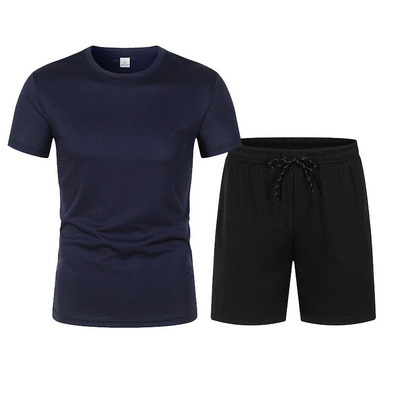 여름 새로운 남자 메쉬 반팔 세트 2 피스 농구 세트 티셔츠 스포츠 반바지 단색 캐주얼 세트