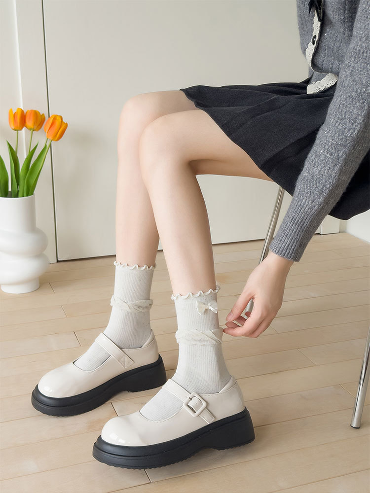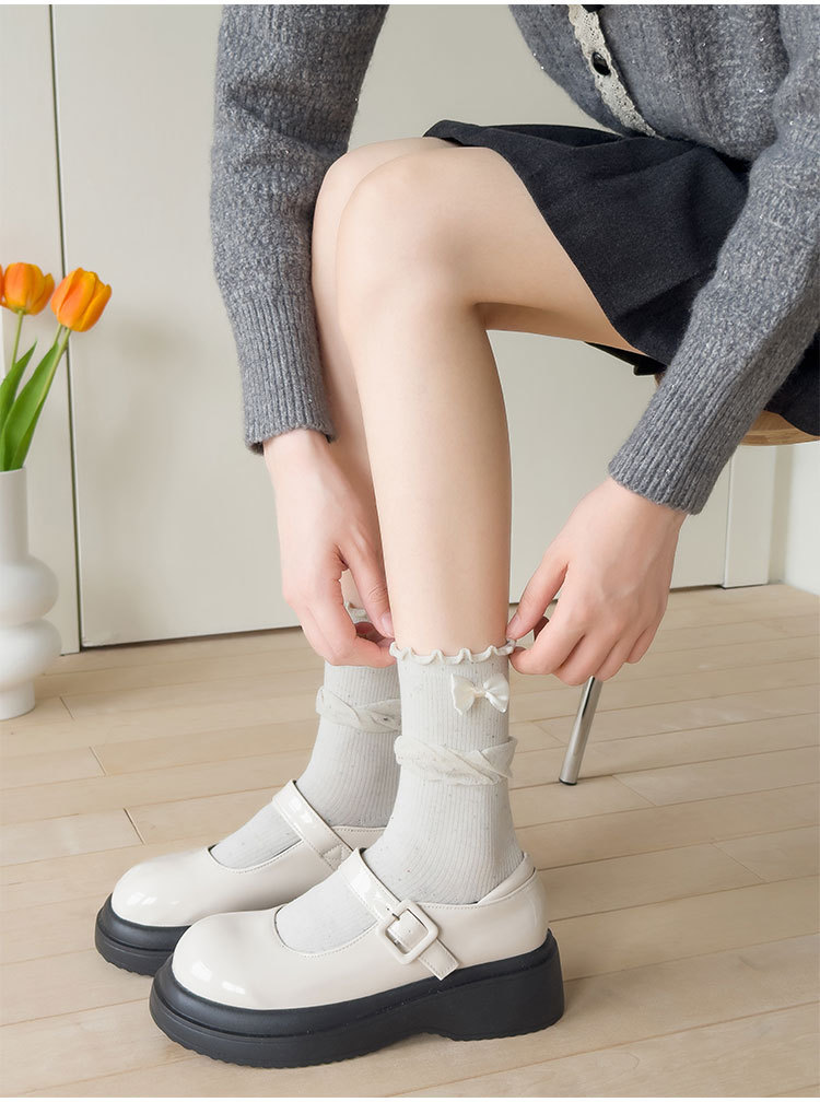 활 흰색 양말 여성의 봄과 여름 단색 중간 길이 양말 일본 스타일 인스타그램 스타일 유행 스택 양말 가을 뼈없는 스타킹스토어 가기