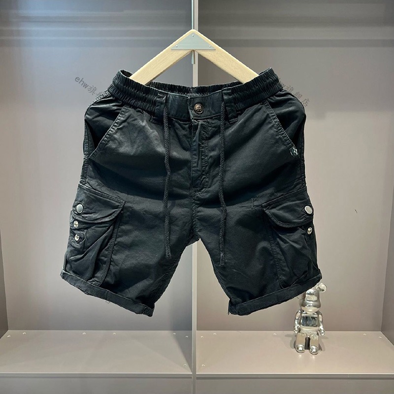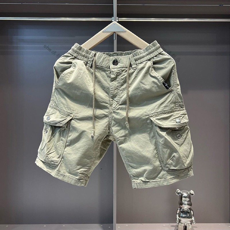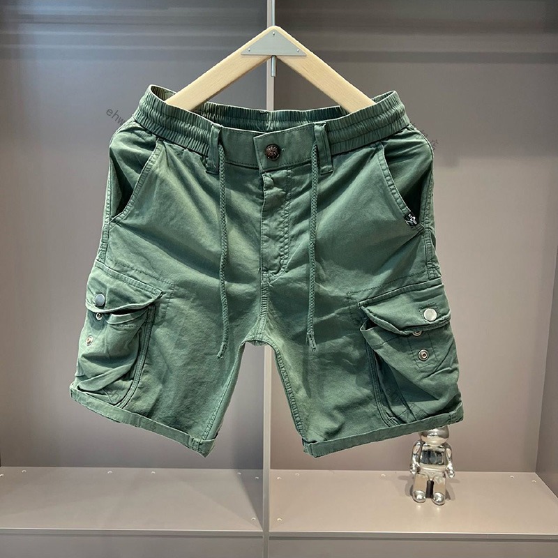 국경 2025 여름 툴링 반바지 남성용 캐주얼 멀티 포켓 느슨한 스트레치 퓨어 코튼 5 점 바지스토어 가기