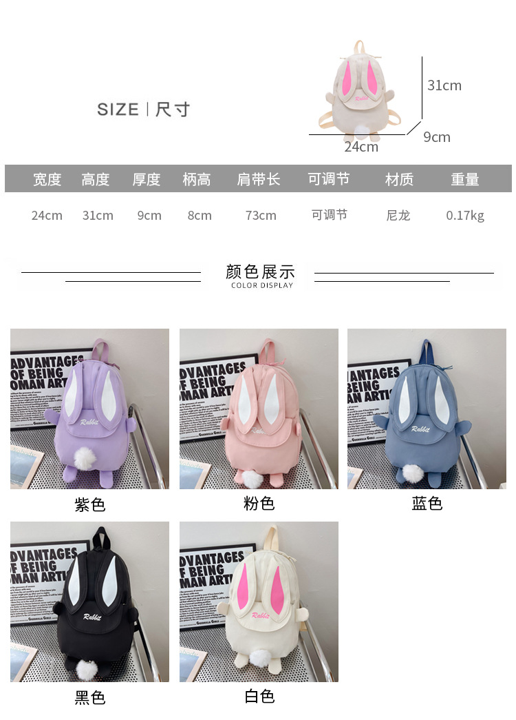 국경 간 어린이 학교 가방 귀여운 토끼 배낭 유치원 어린이 작은 학교 가방 아기 토끼 귀 배낭 도매