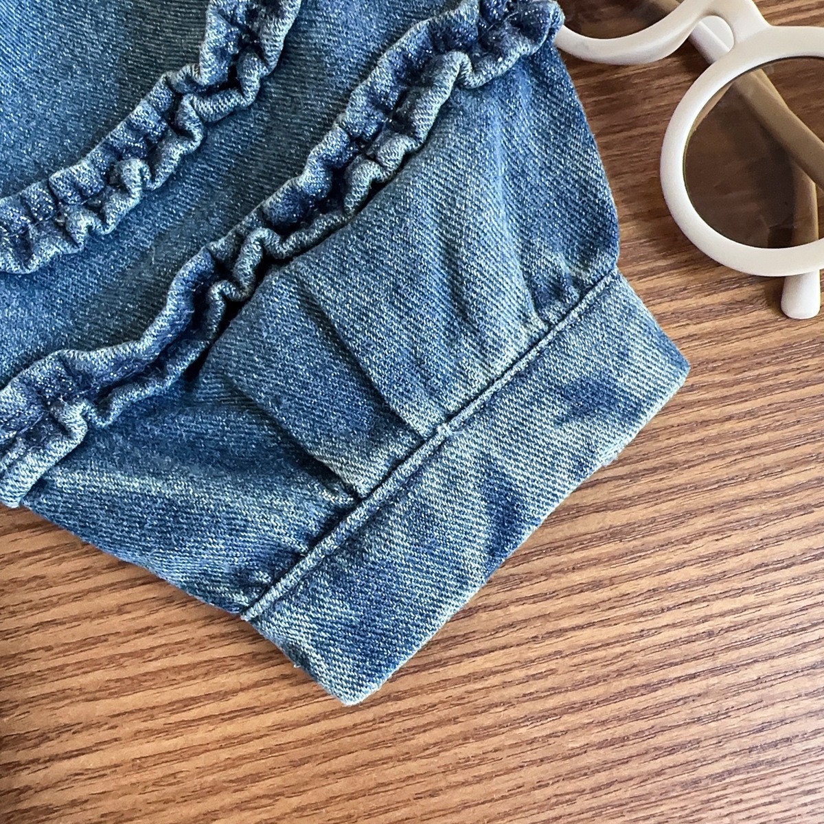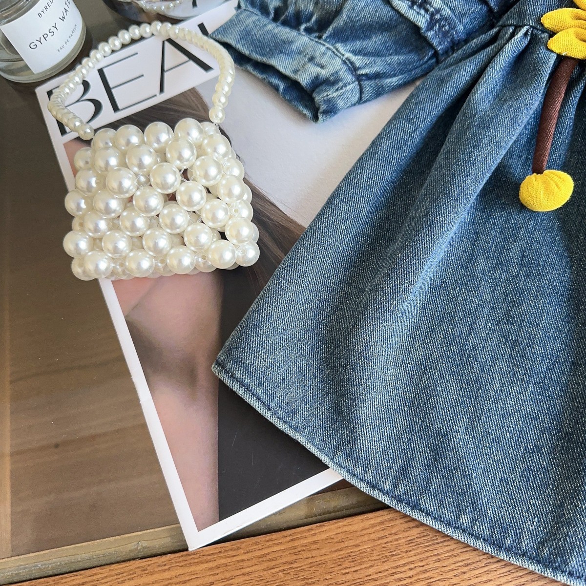 소녀 해바라기 봄과 가을 새로운 어린이 서양식 탑 베이비 코트 코트 재킷 데님 스커트 2025 프린세스 스타일