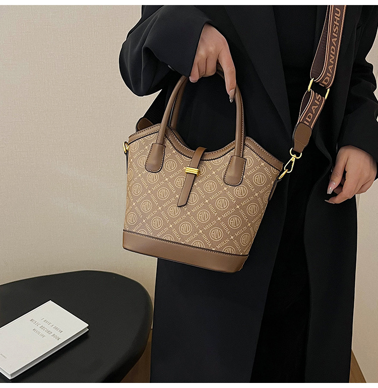 하이 엔드 국경 가방 여성의 2025 새로운 유행 대용량 인쇄 편지 버킷 가방 어깨 크로스 바디 핸드백