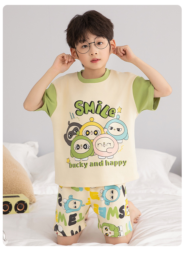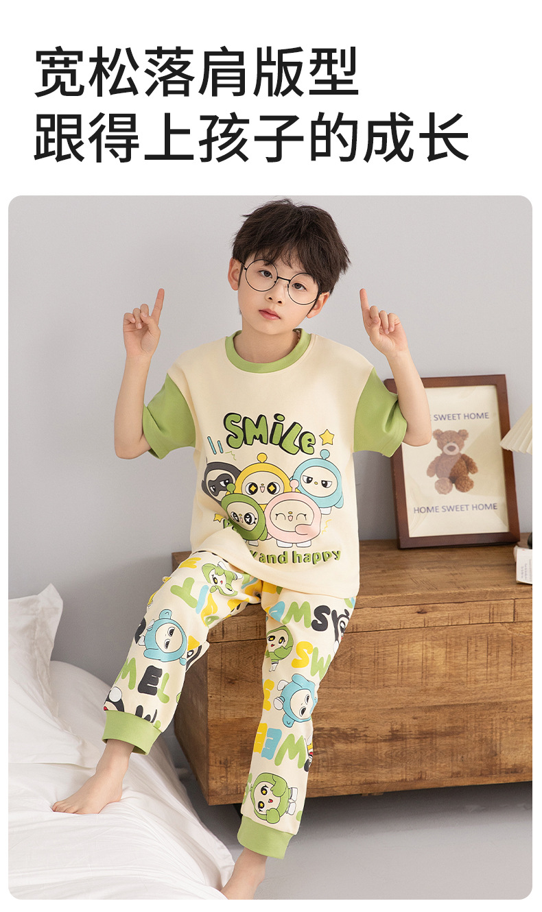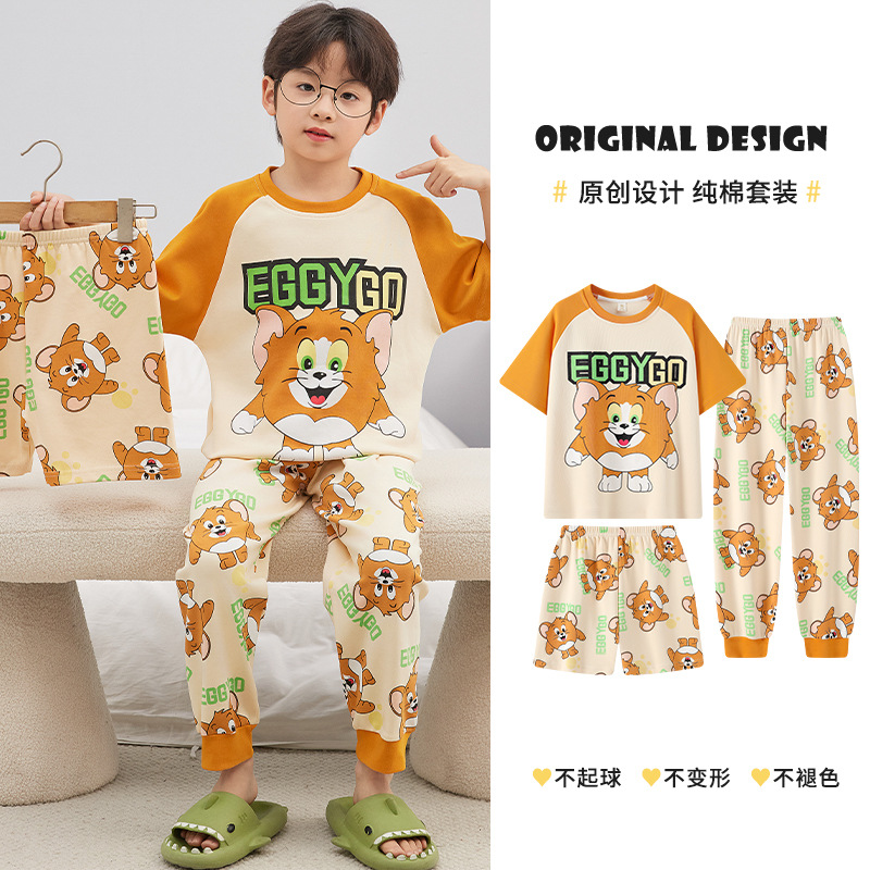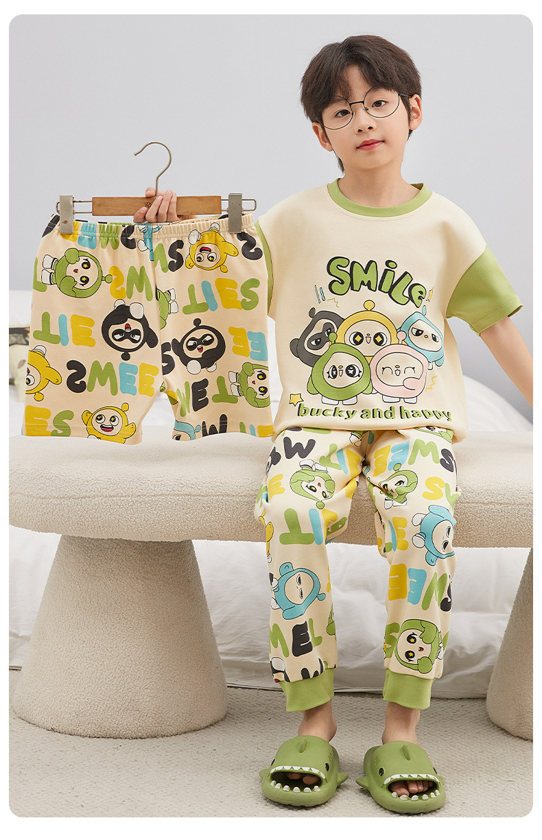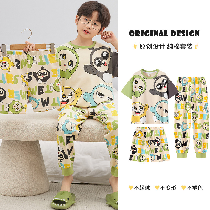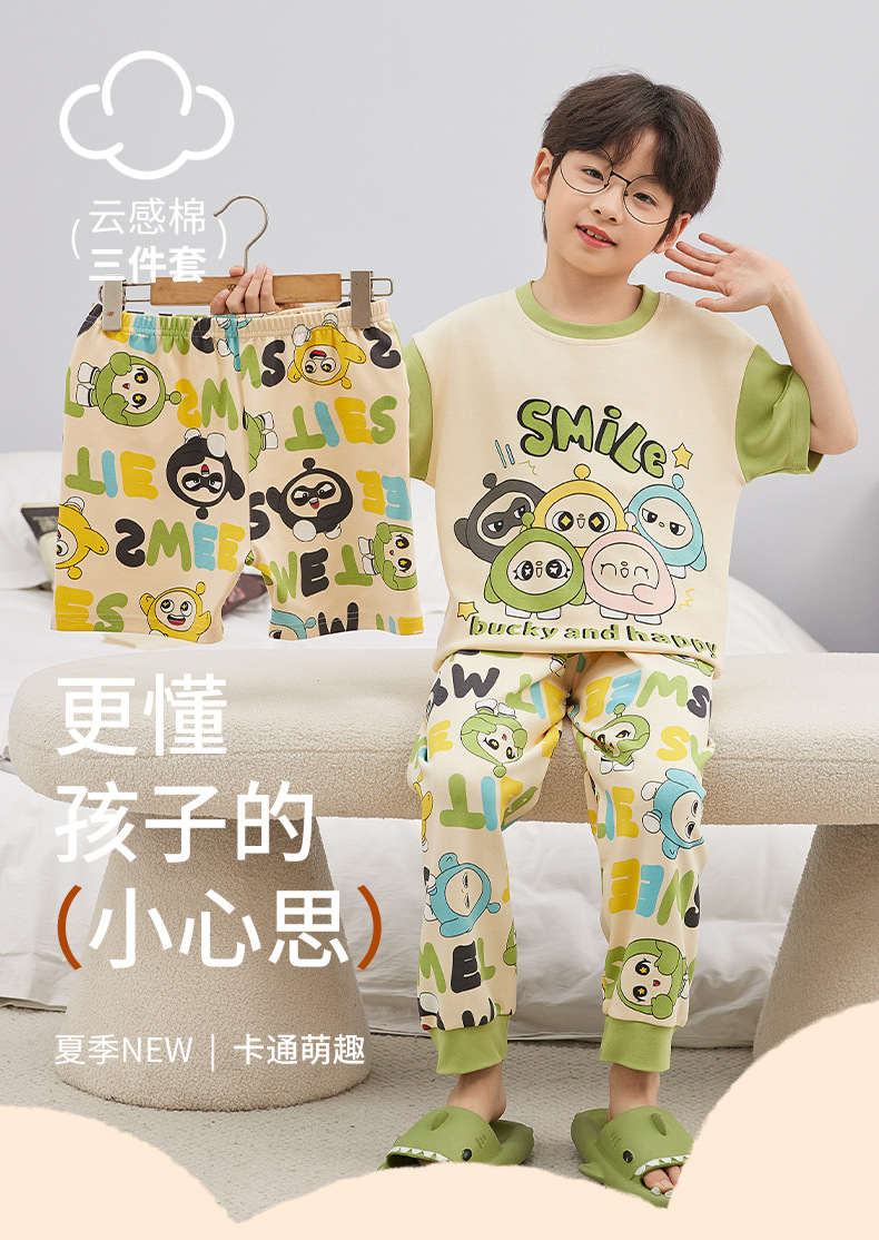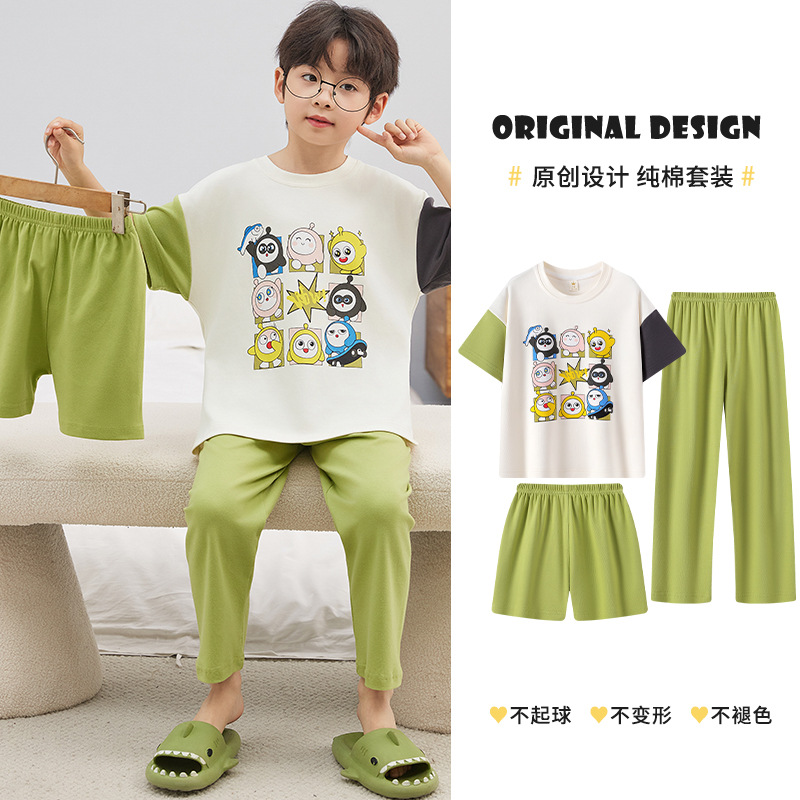 어린이 잠옷 소년 2025 년 새 여름 3 종 세트 면 얇은 반팔 소년의 봄과 여름 홈 옷스토어 가기