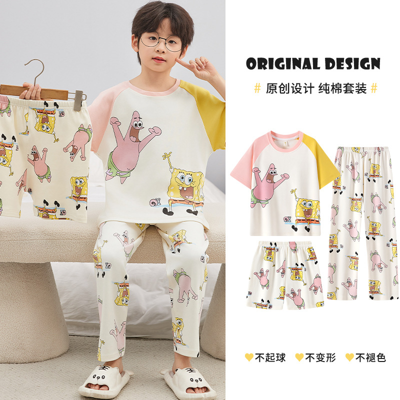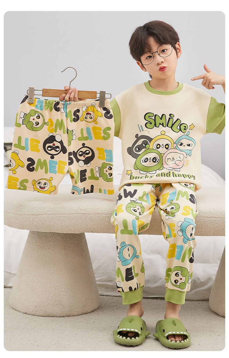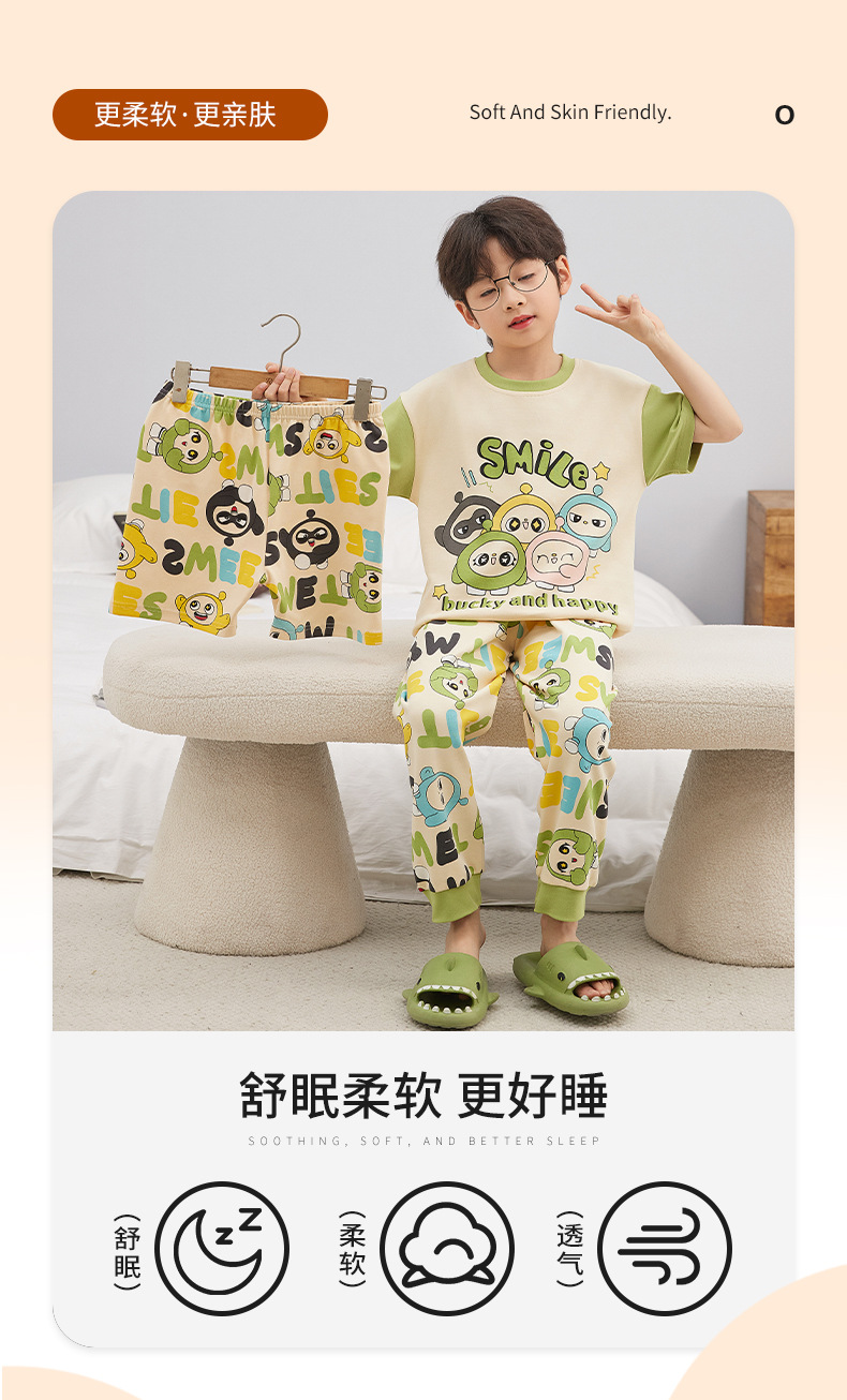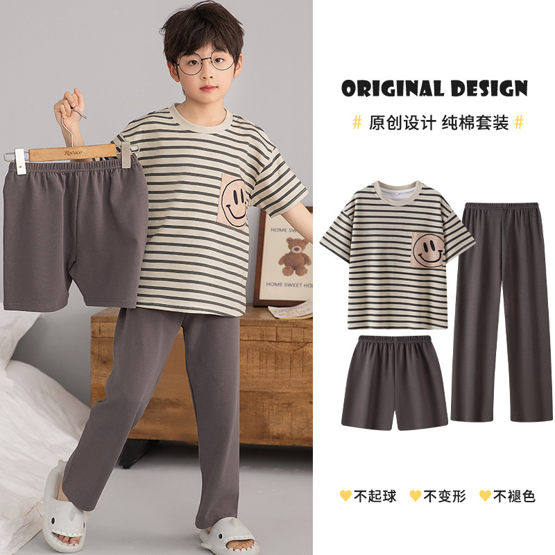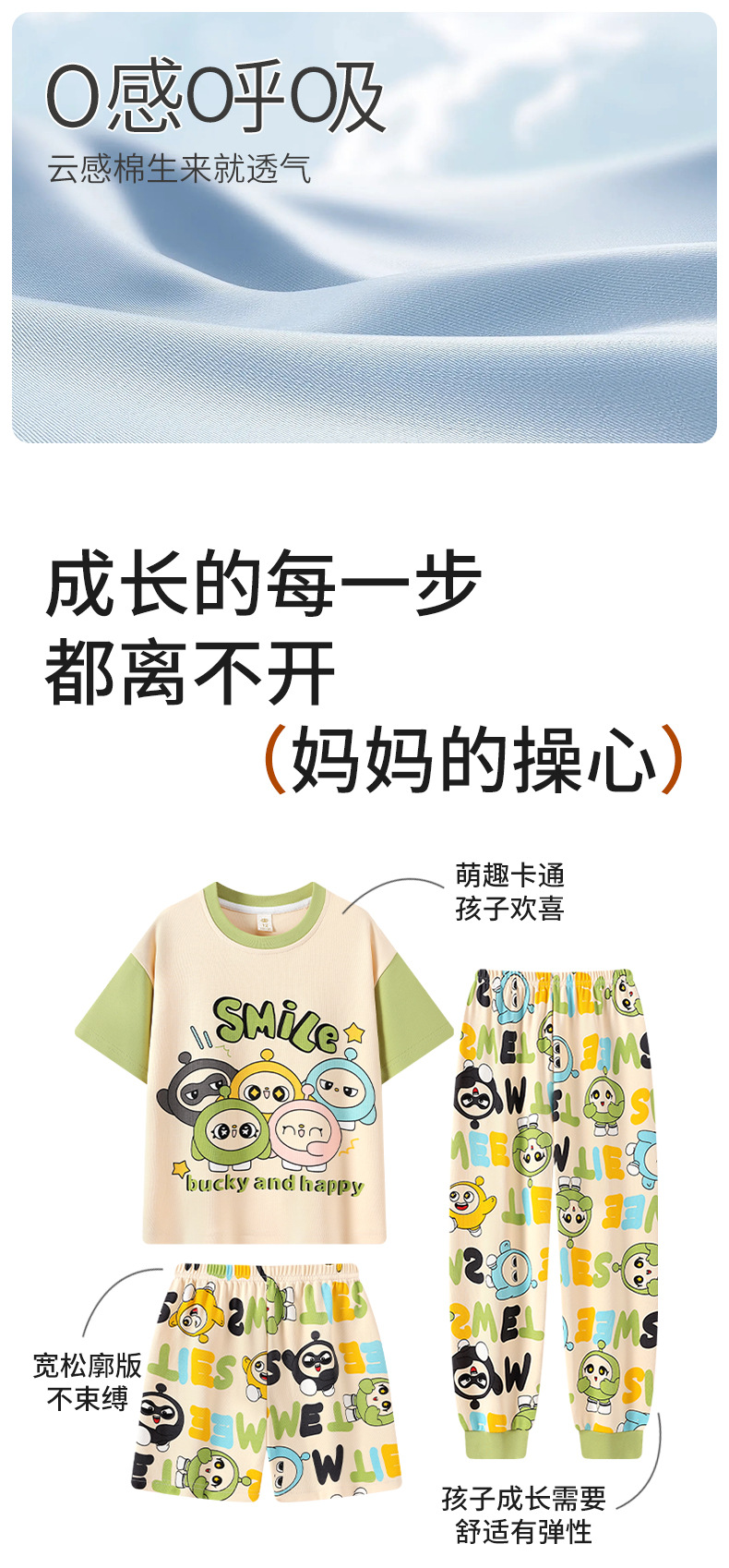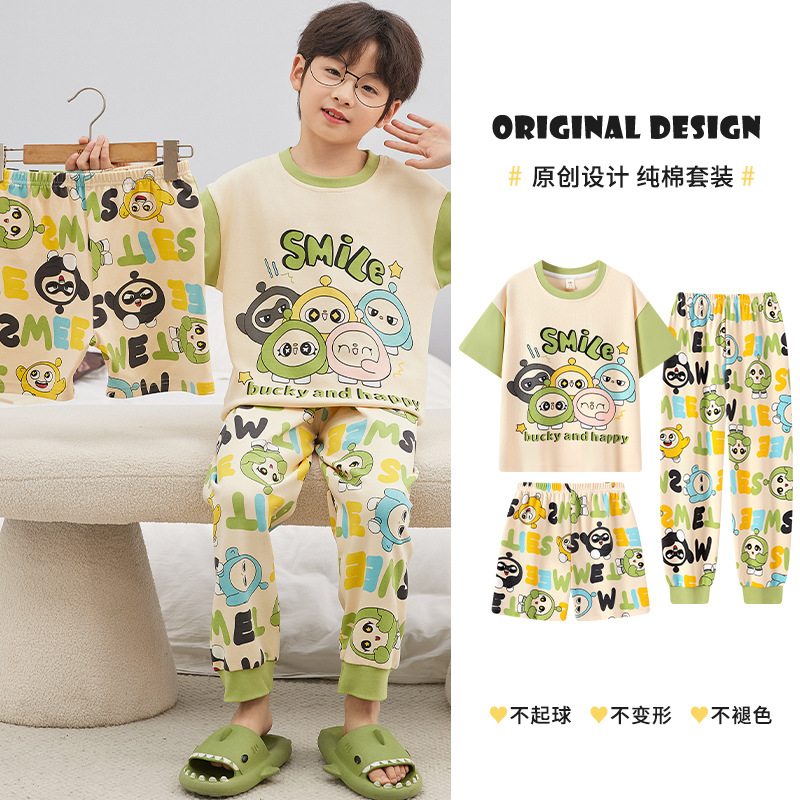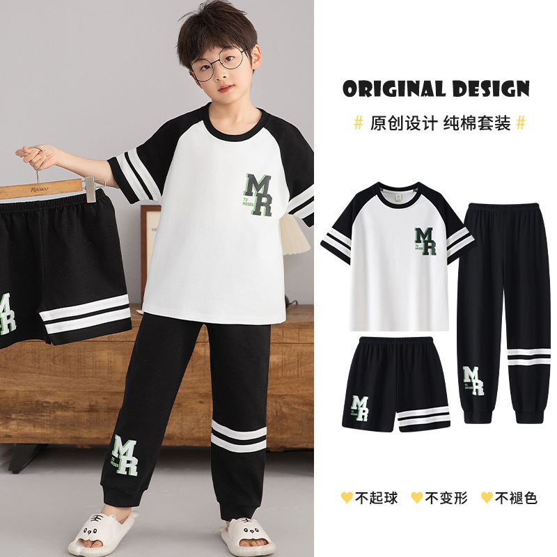 어린이 잠옷 소년 2025 년 새 여름 3 종 세트 면 얇은 반팔 소년의 봄과 여름 홈 옷