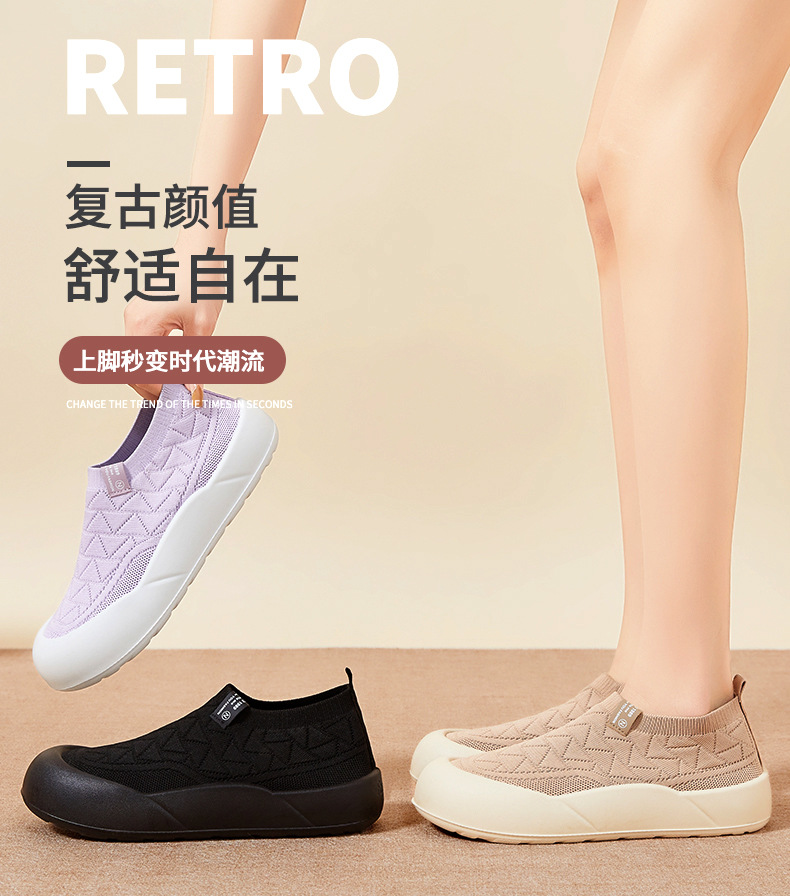 신발 여성 신발 올매치 패션 싱글 레이어 신발 슬립 온 캐주얼 신발 두꺼운 바닥 부드러운 표면 폴리우레탄 편안한 헤어 슈즈