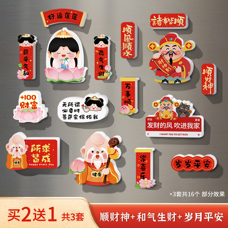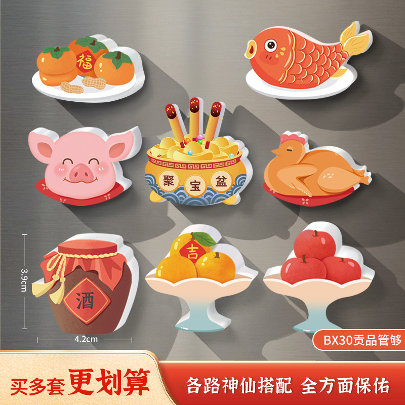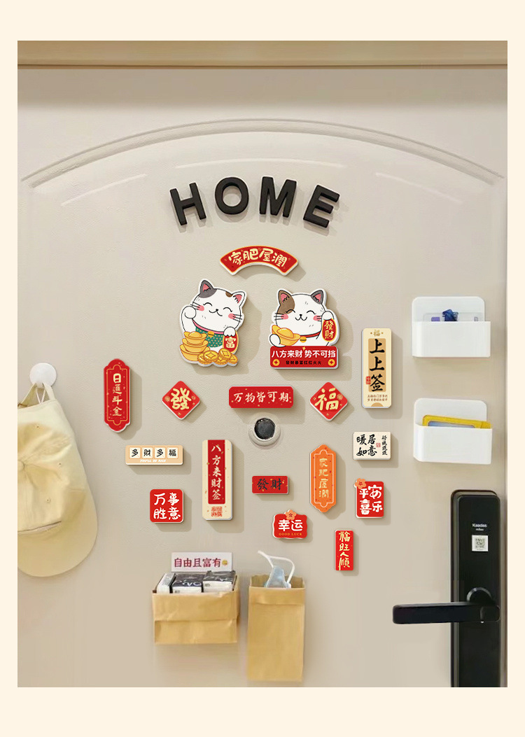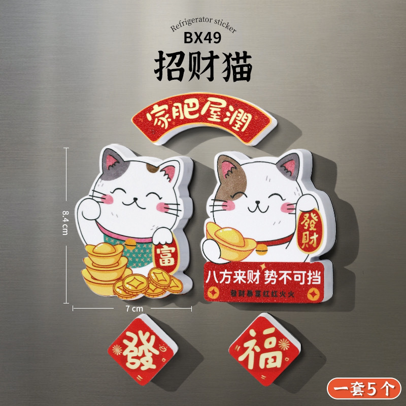 재산 냉장고 스티커 행운의 고양이 귀여운 3 차원 자석 스티커 축제 새해 개인화 된 창조적 인 마그네틱 스티커 장식의 신스토어 가기