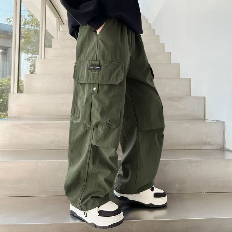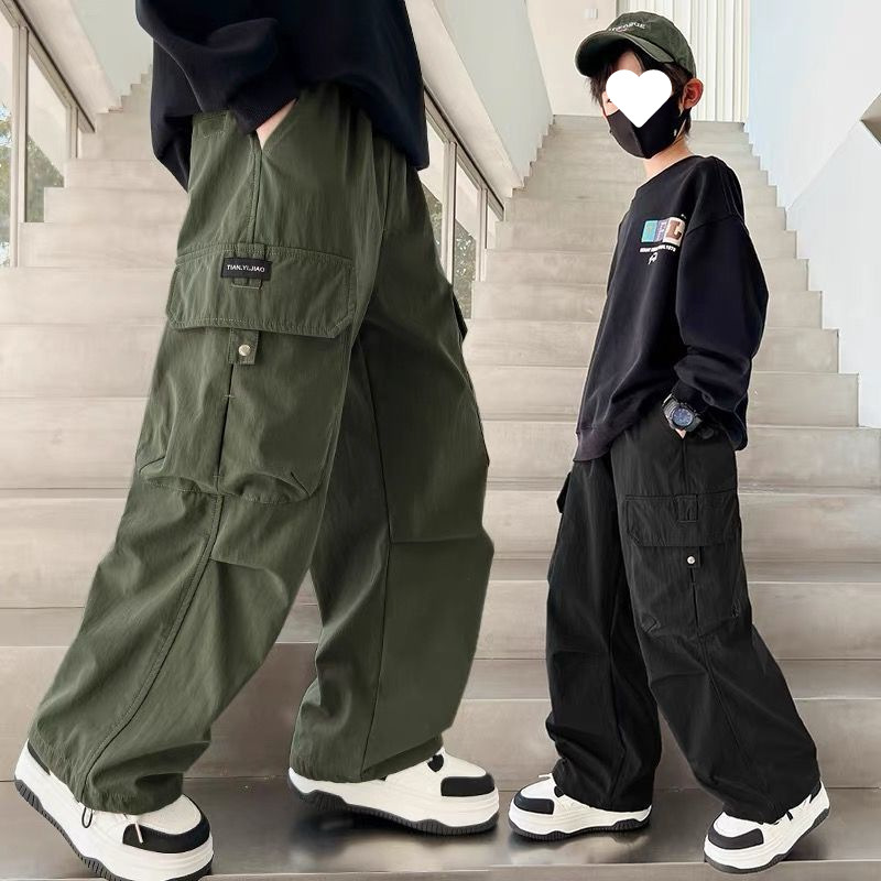 [탄성 허리 머리] 소년 바지 봄과 가을 2025 소년 새 바지 바지 큰 아이들은 느슨한 외국 스타일을 입는다