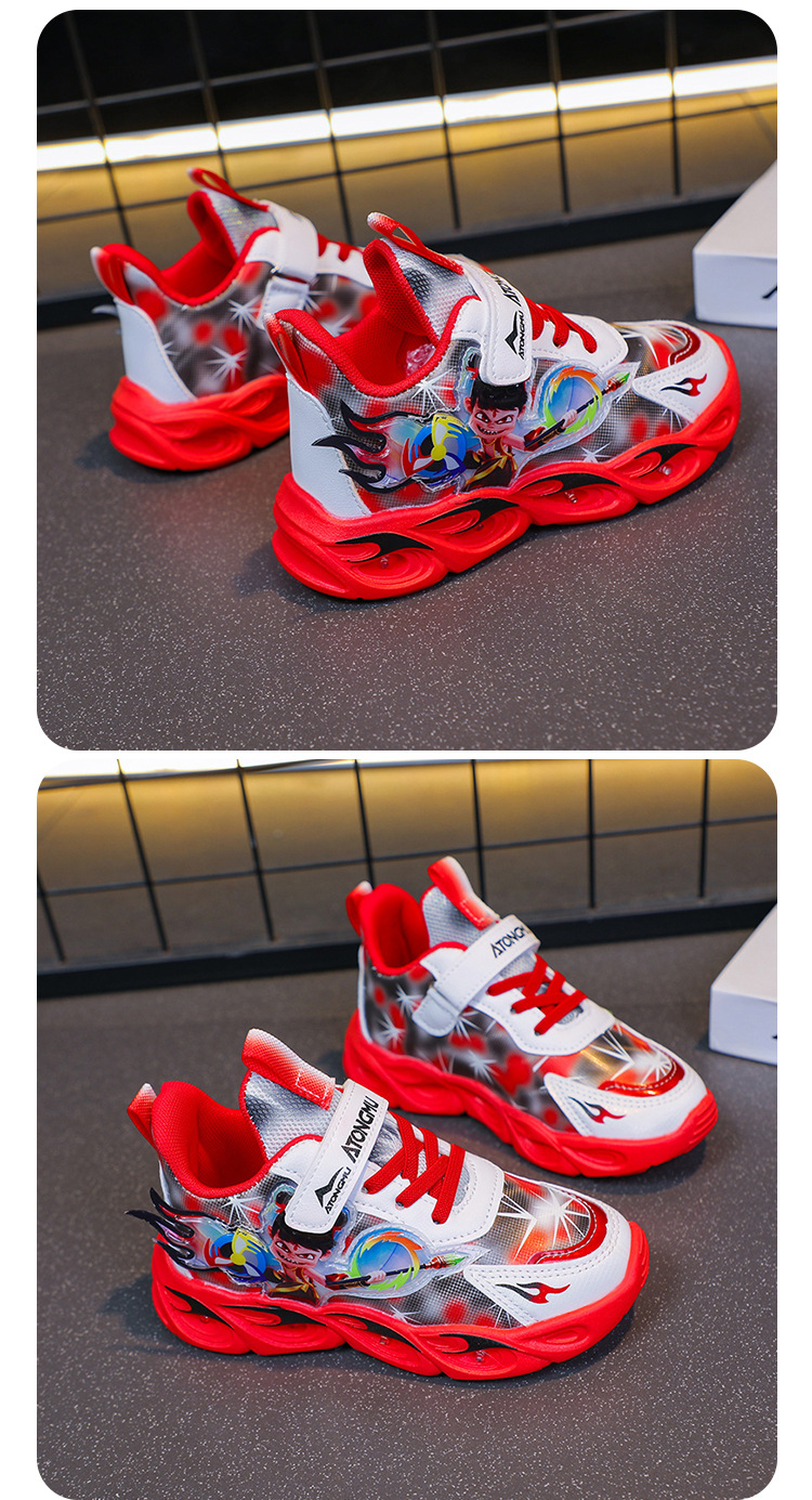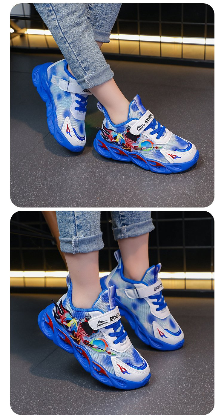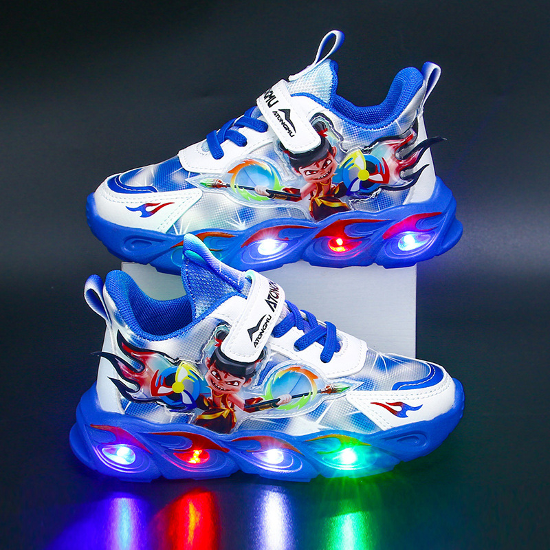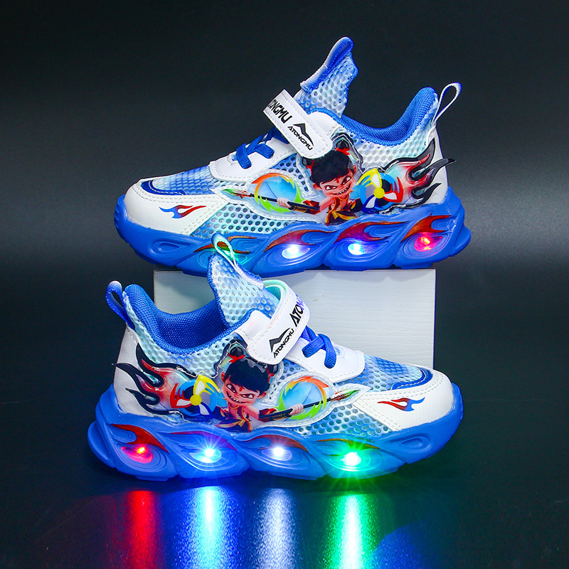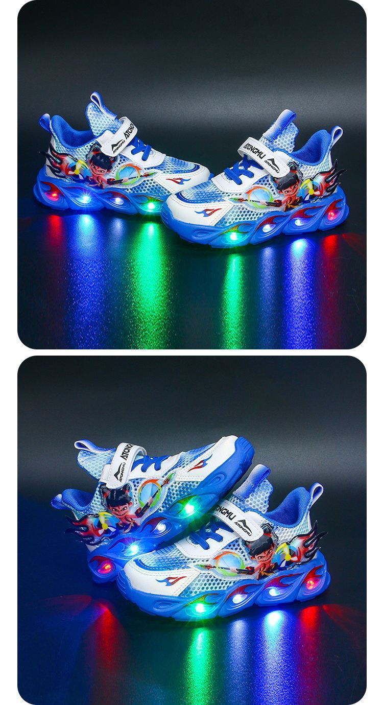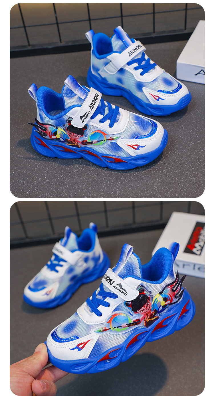 도매 Nezha 조명 어린이 운동화 봄 가을 2022 새로운 메쉬 가죽 표면 소년 미끄럼 방지 부드러운 바닥 운동화스토어 가기