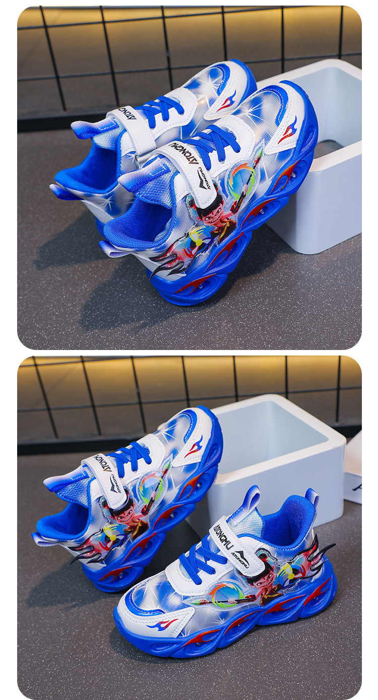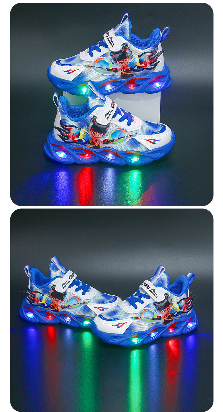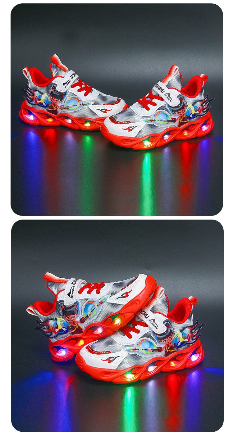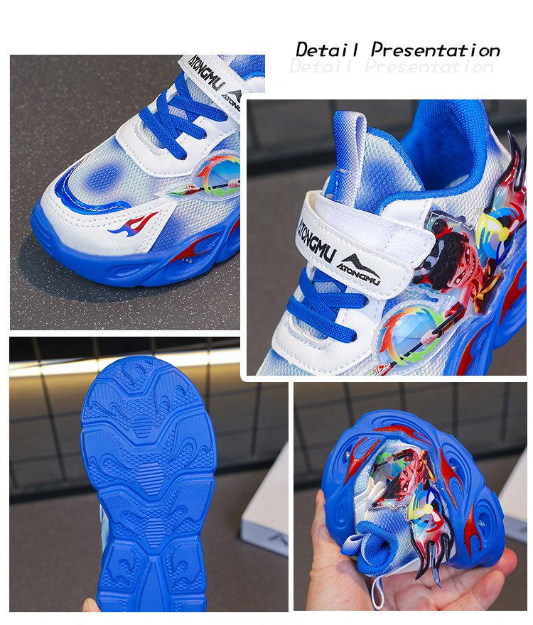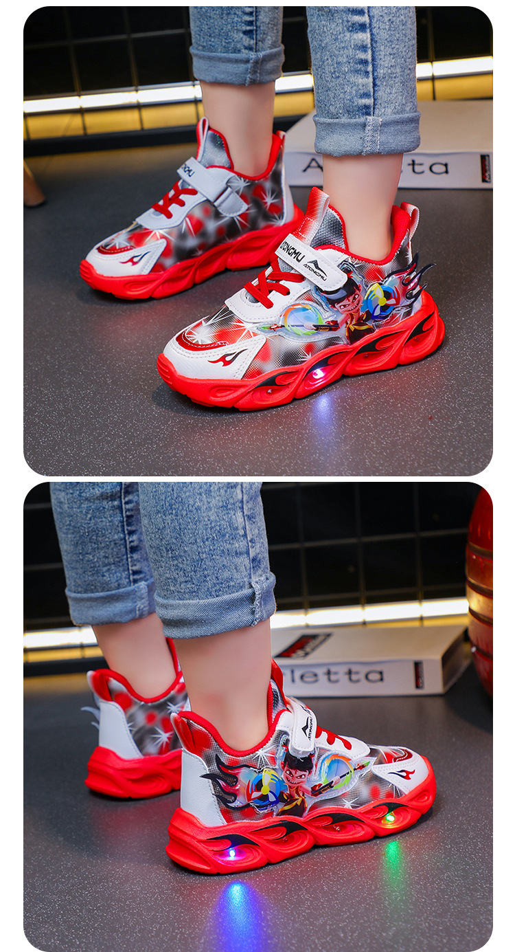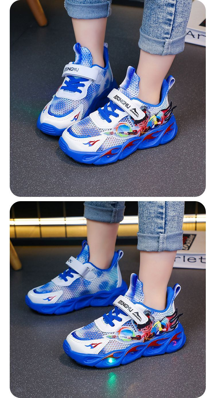 도매 Nezha 조명 어린이 운동화 봄 가을 2022 새로운 메쉬 가죽 표면 소년 미끄럼 방지 부드러운 바닥 운동화스토어 가기