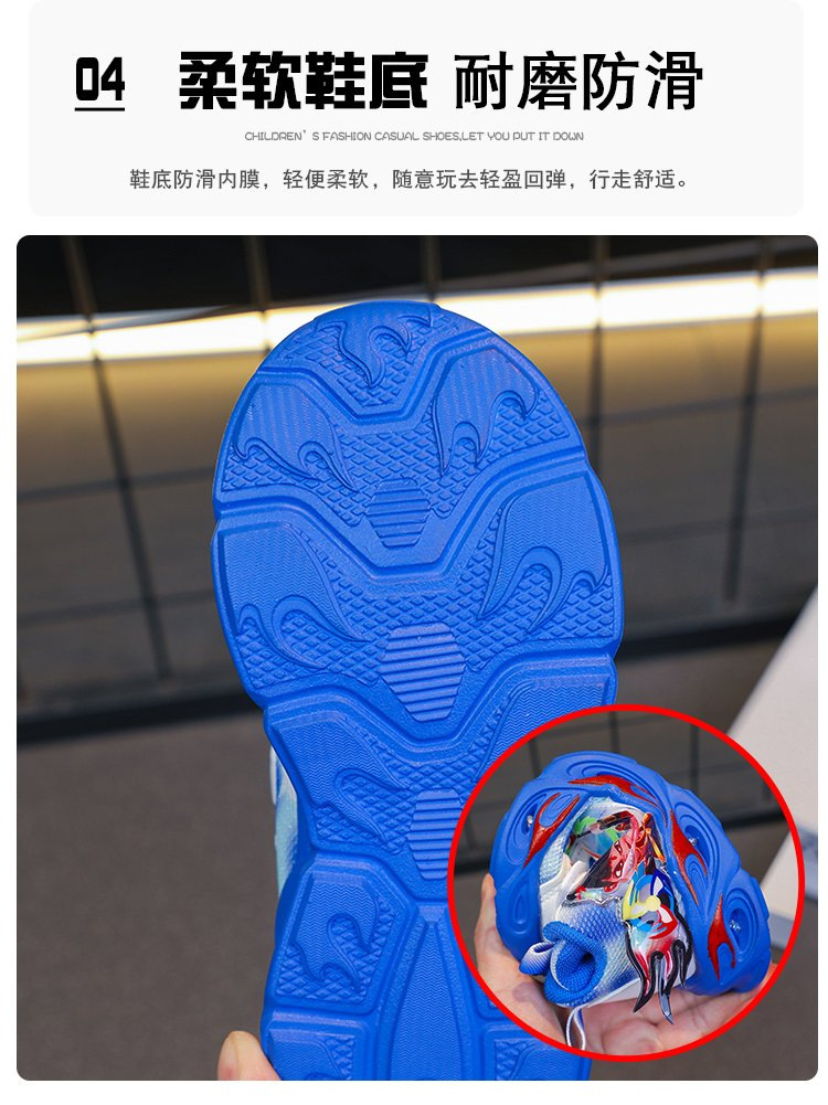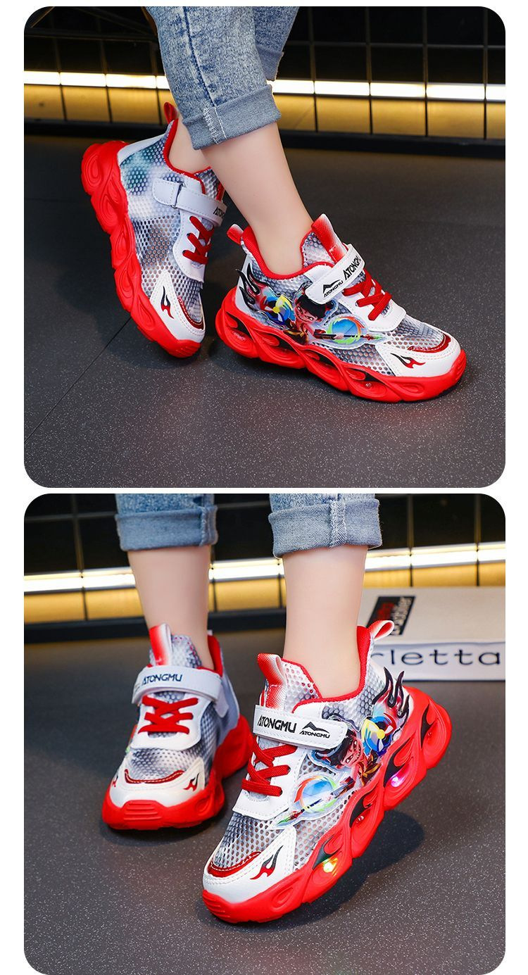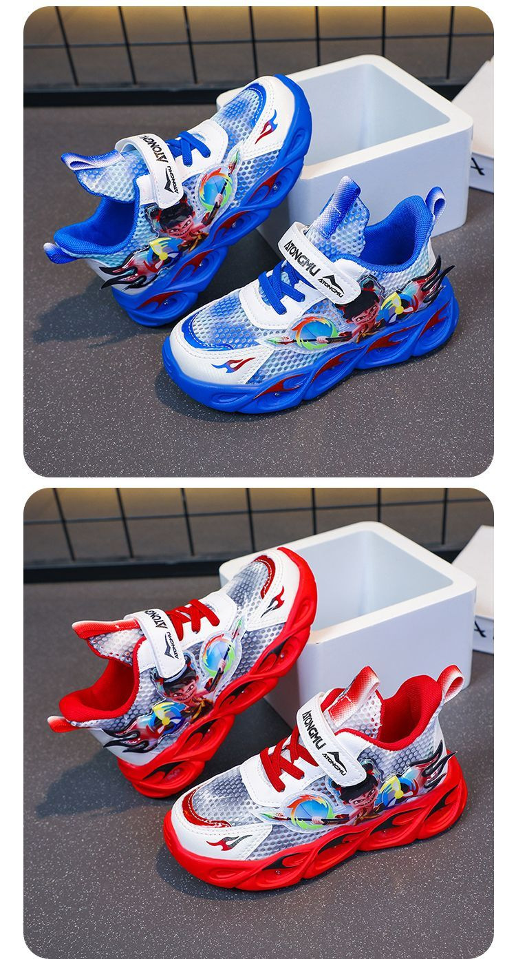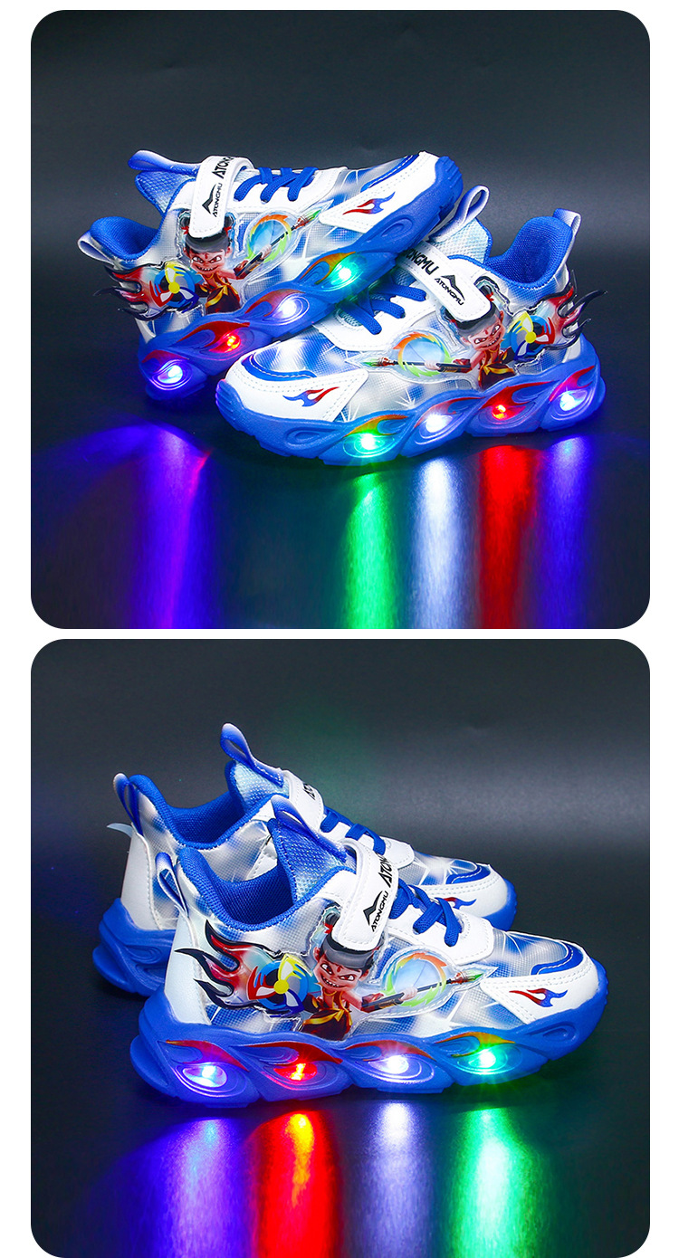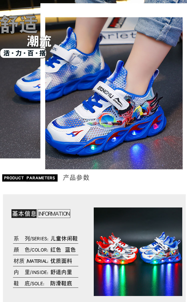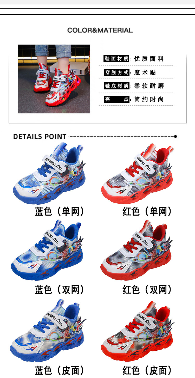 도매 Nezha 조명 어린이 운동화 봄 가을 2022 새로운 메쉬 가죽 표면 소년 미끄럼 방지 부드러운 바닥 운동화스토어 가기