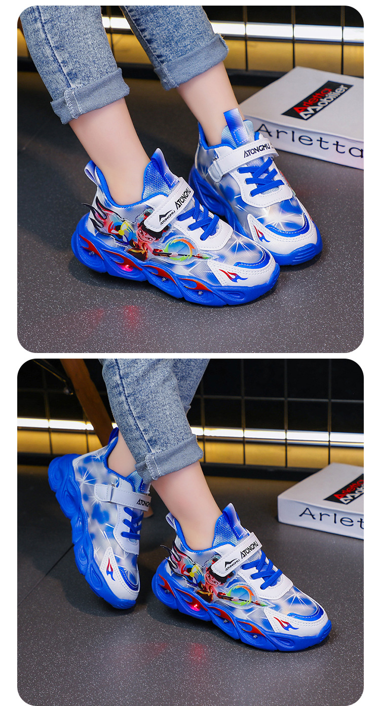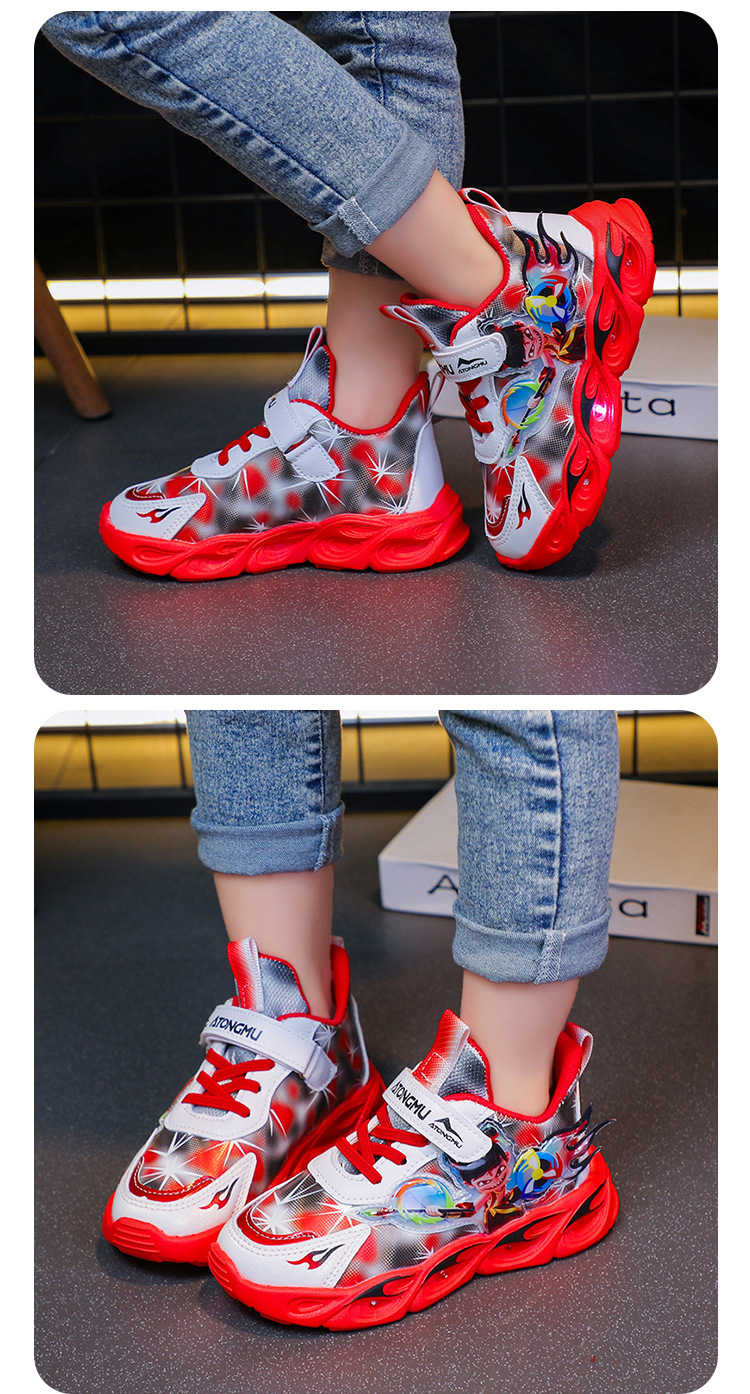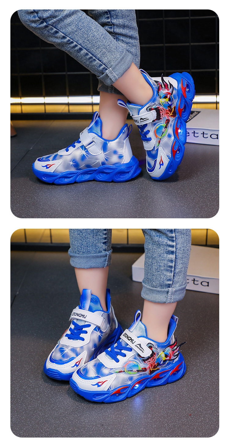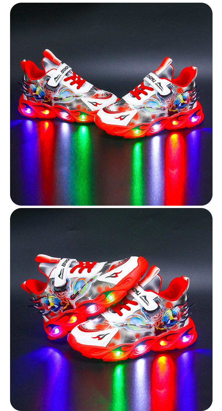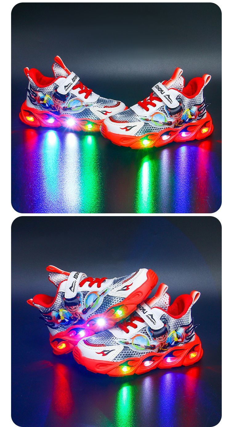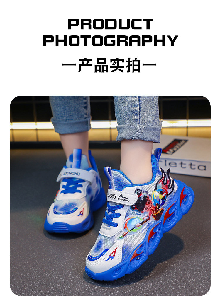 도매 Nezha 조명 어린이 운동화 봄 가을 2022 새로운 메쉬 가죽 표면 소년 미끄럼 방지 부드러운 바닥 운동화스토어 가기