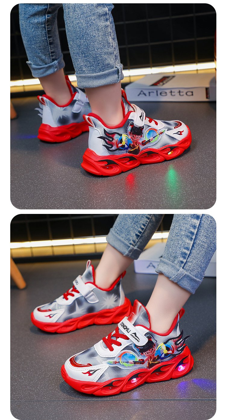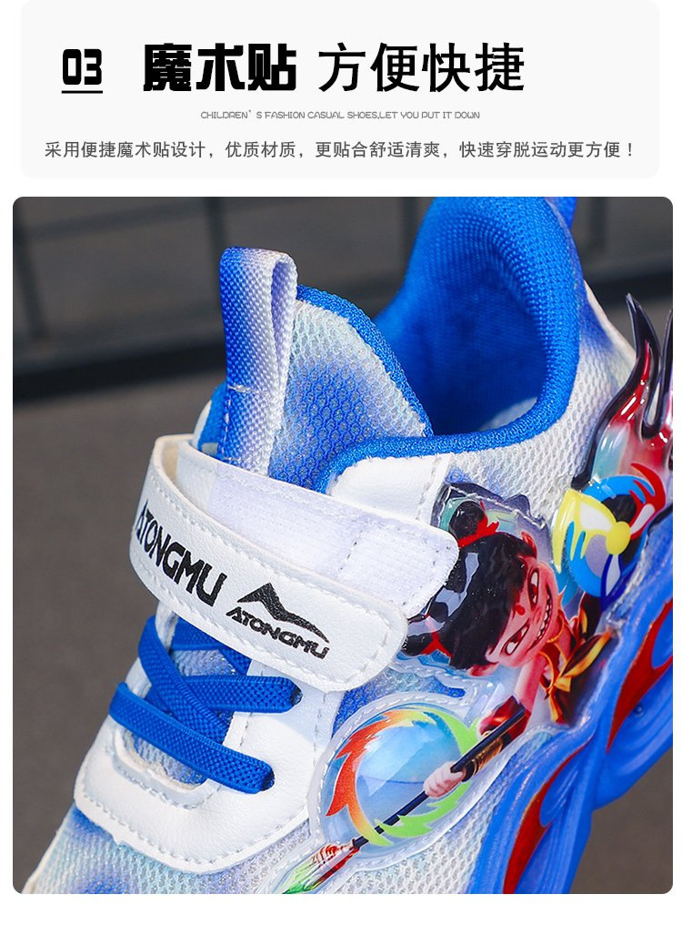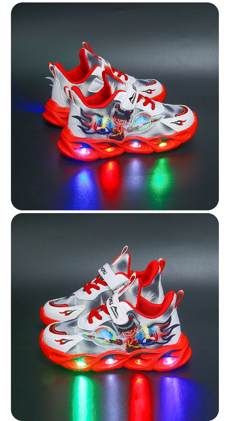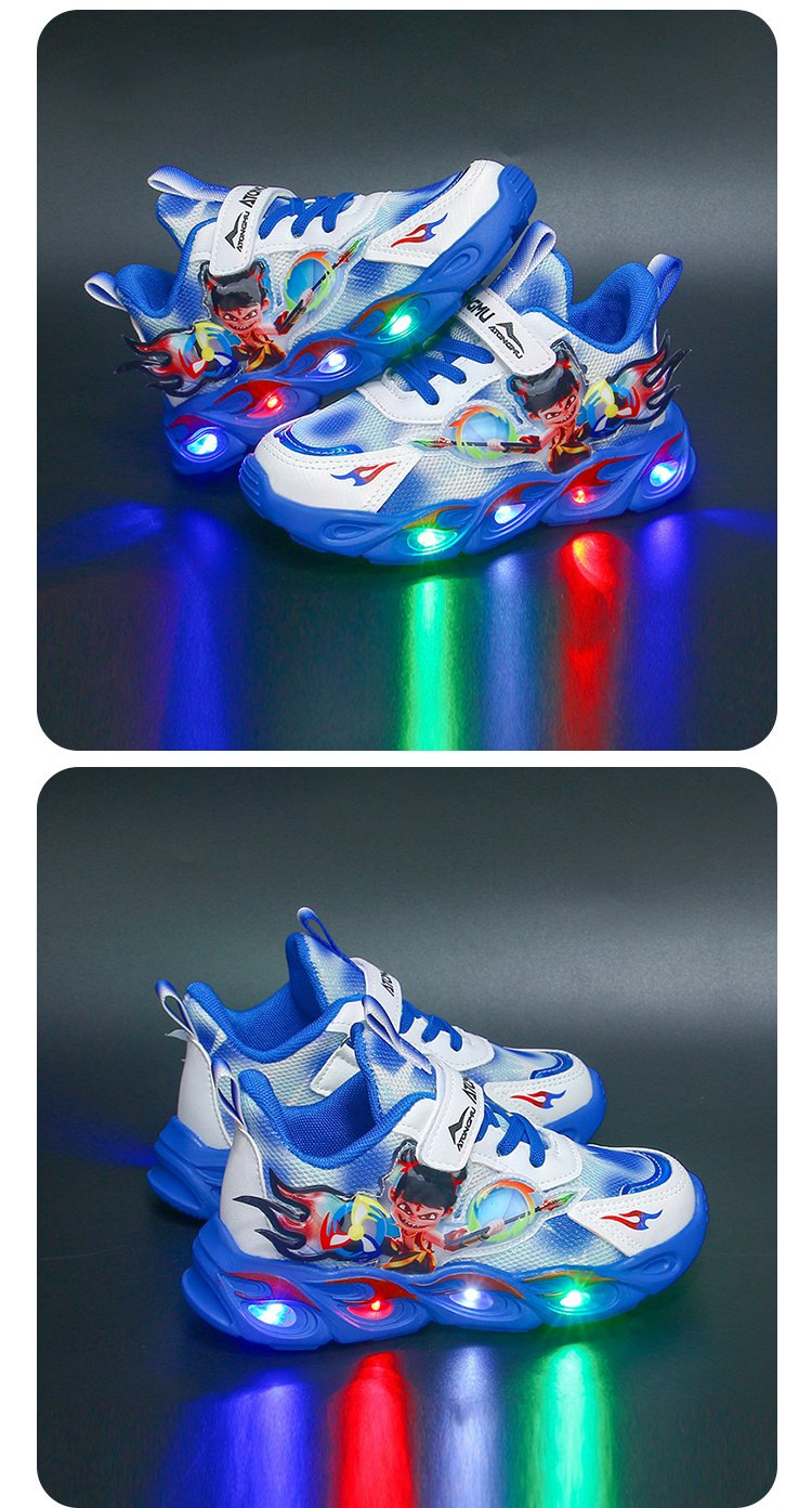 도매 Nezha 조명 어린이 운동화 봄 가을 2022 새로운 메쉬 가죽 표면 소년 미끄럼 방지 부드러운 바닥 운동화