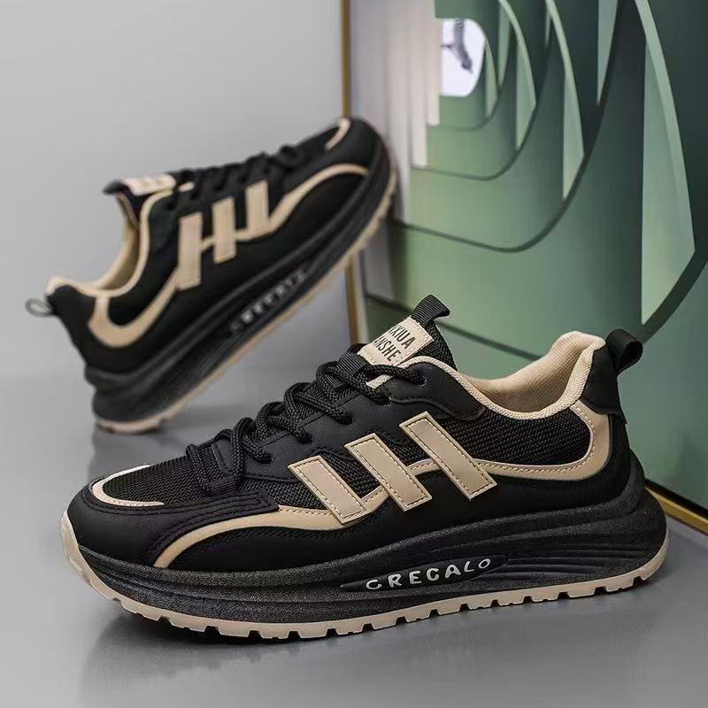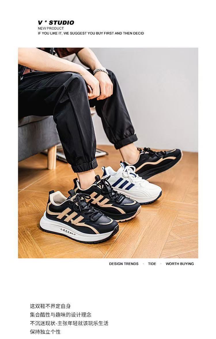 남성 신발 2025 새로운 봄 가죽 표면 스포츠 캐주얼 신발 통기성 메쉬 표면 플랫폼 아빠 신발스토어 가기