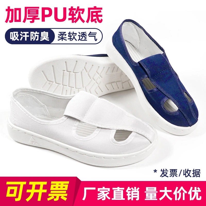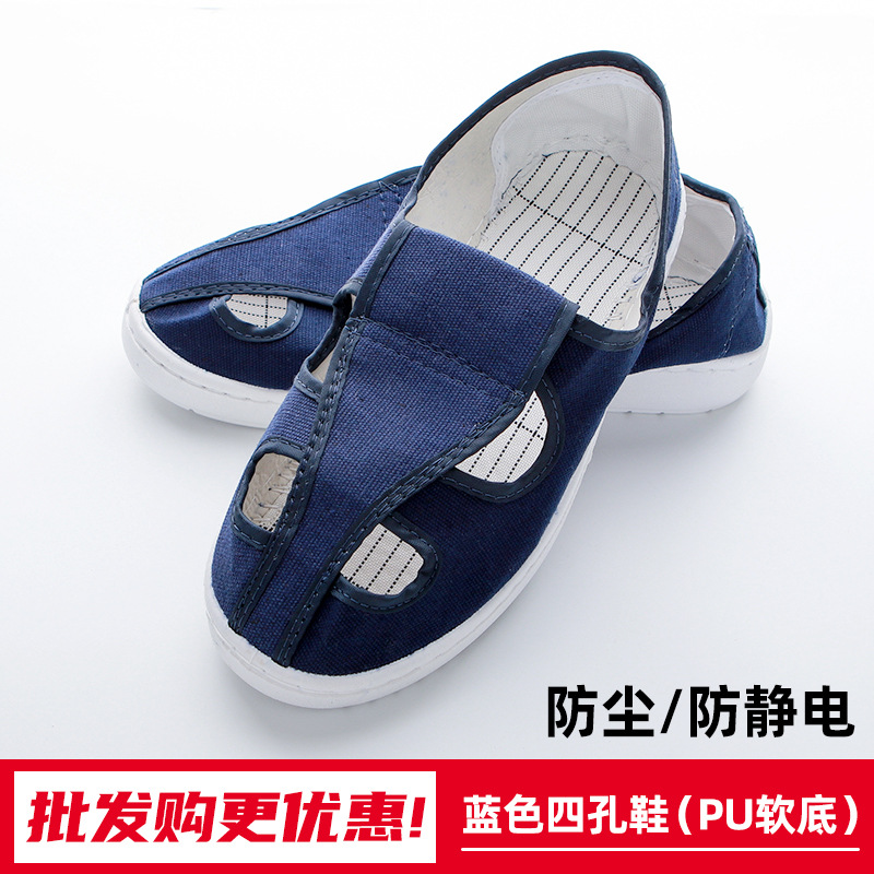 제조업체는 정전기 방지 4 홀 신발 캔버스 먼지없는 작업장 노동 보호 신발 PU 두껍게 마모 방지 부드러운 밑창 작업 신발을 재고스토어 가기