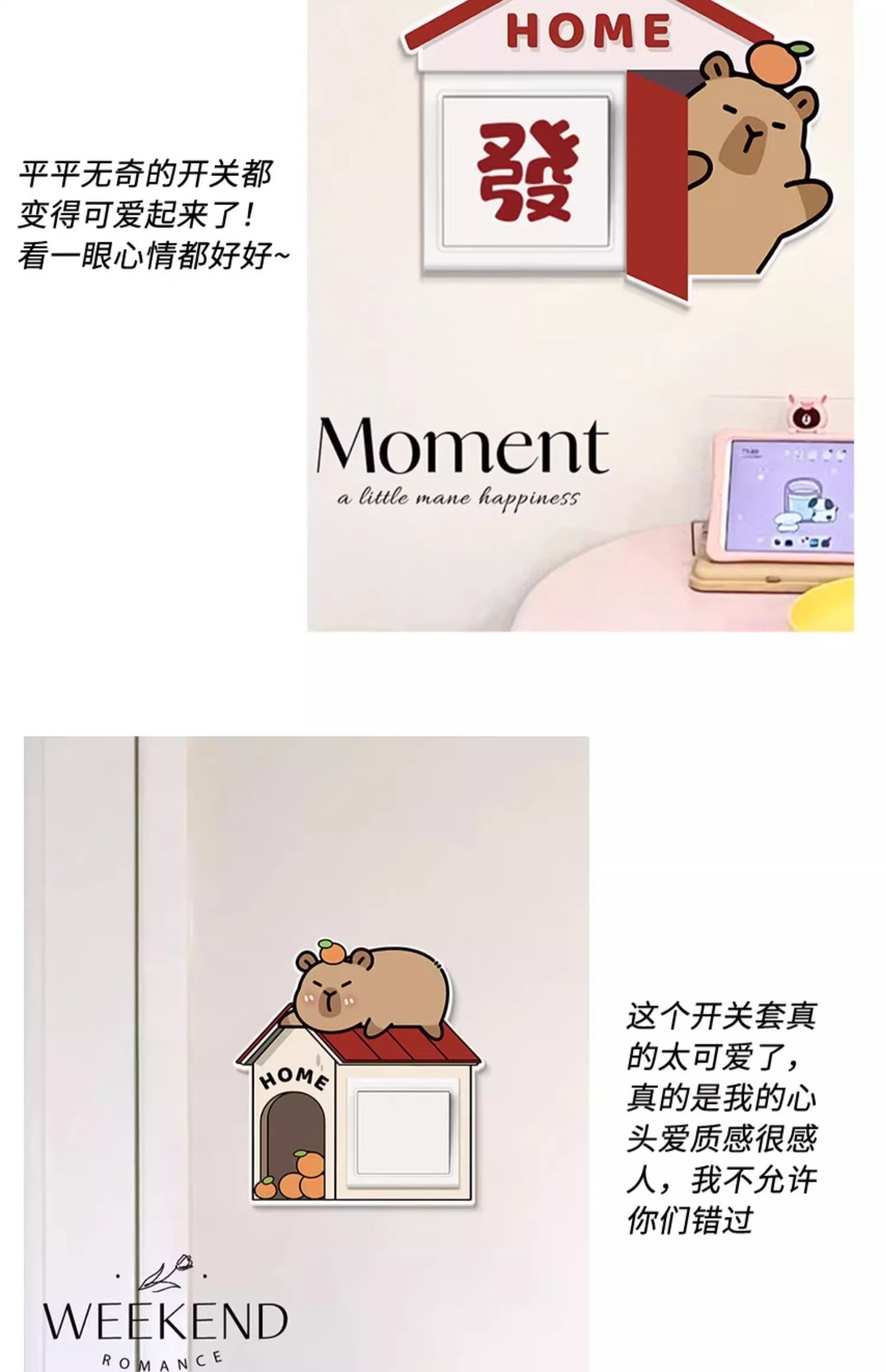 卡皮巴拉创意开关贴家用边框套亚克力插座保护套遮丑美化装饰墙贴