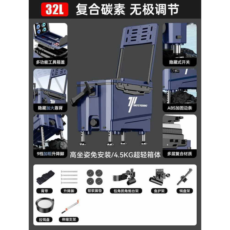 • [무단계 조절] 바퀴 없음 - 32L 네이비 블루(마그네슘 알루미늄 5종 세트 + 미끼 트레이 + 텔레스코픽