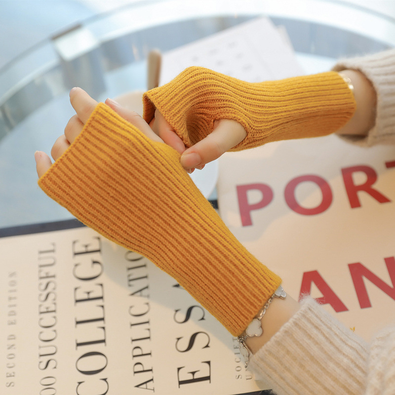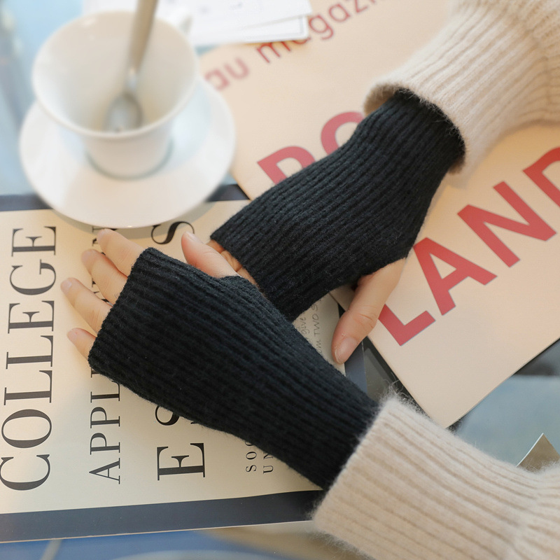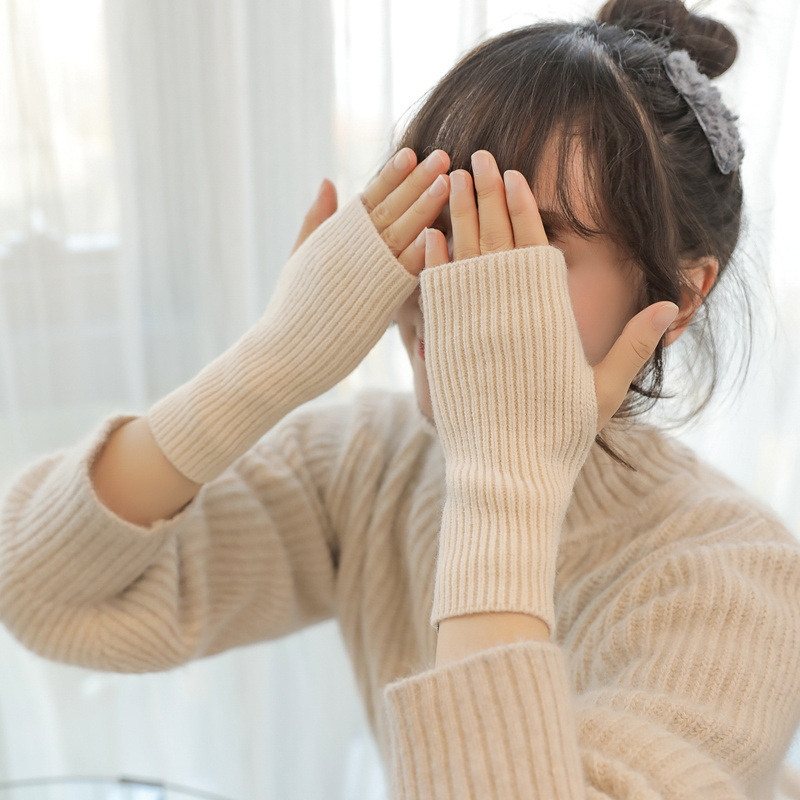 가을 겨울 여성용 반손가락 모직 장갑, 두껍고 따뜻한 핑거리스 터치 스크린 니트 장갑, 학생용 쓰기 슬리브 및 손목 보호대스토어 가기