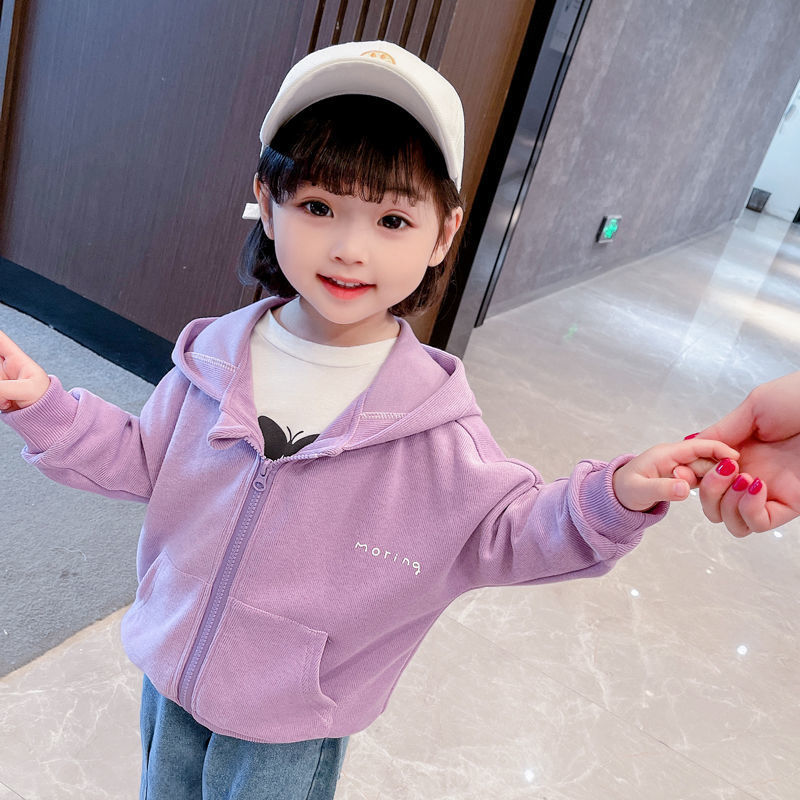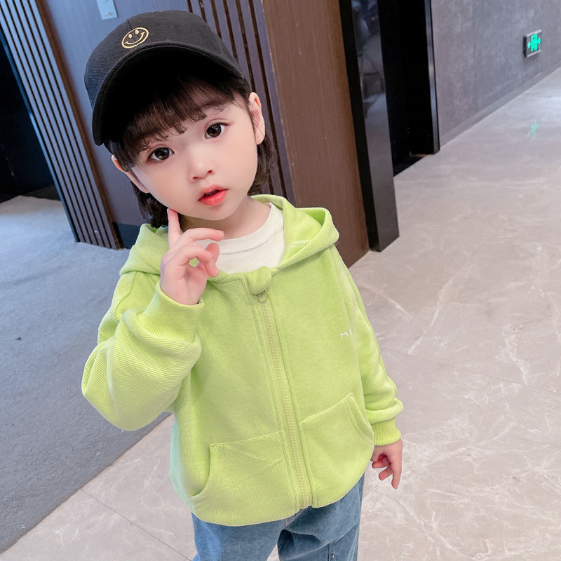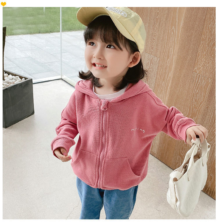 소년과 소녀 어린이를위한 봄과 가을 단색 캐주얼 코트 한국 스타일 탑 봄 옷 스포츠 카디건 베이비 후드 스웨터 트렌디스토어 가기