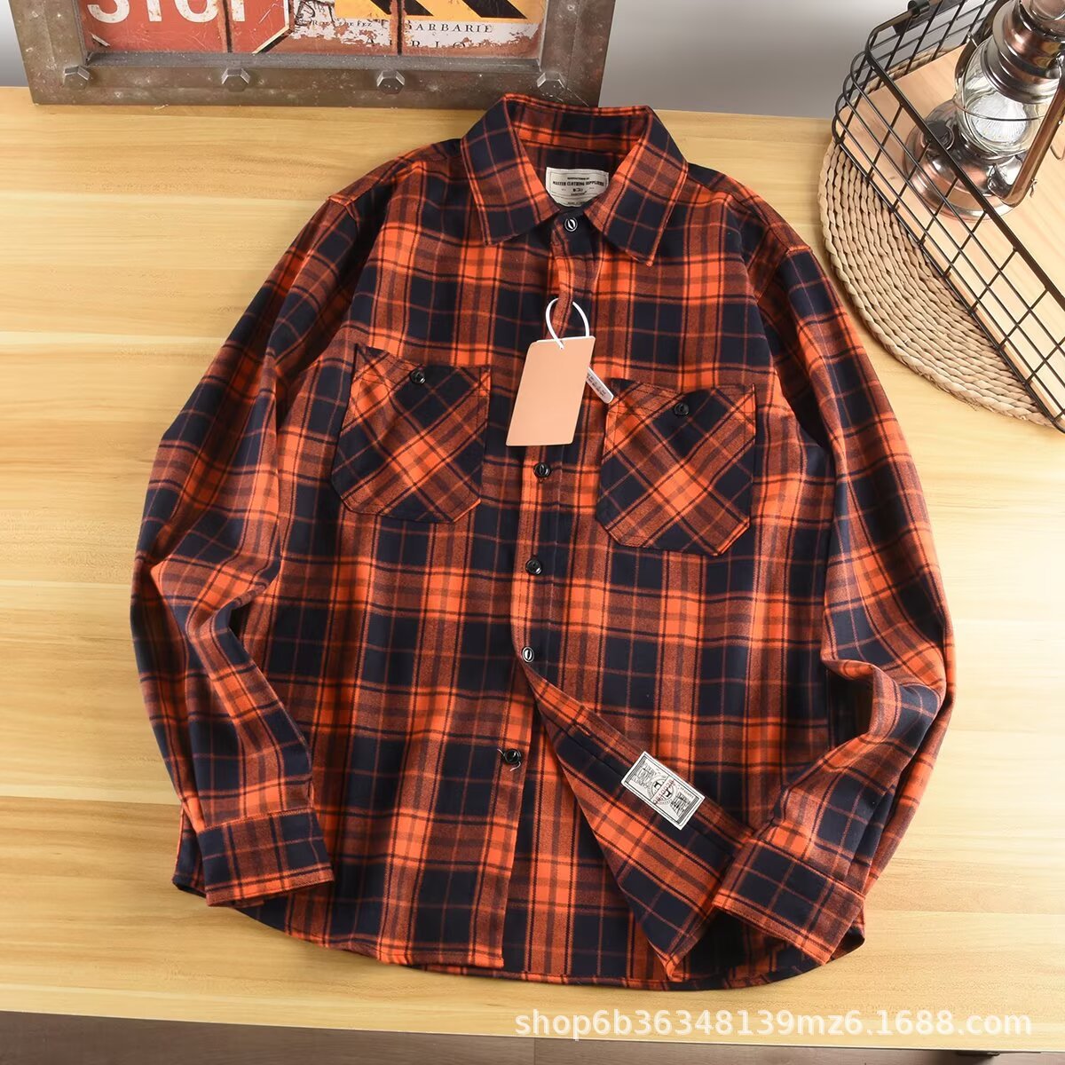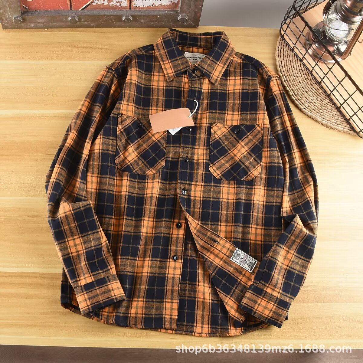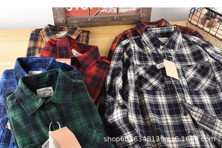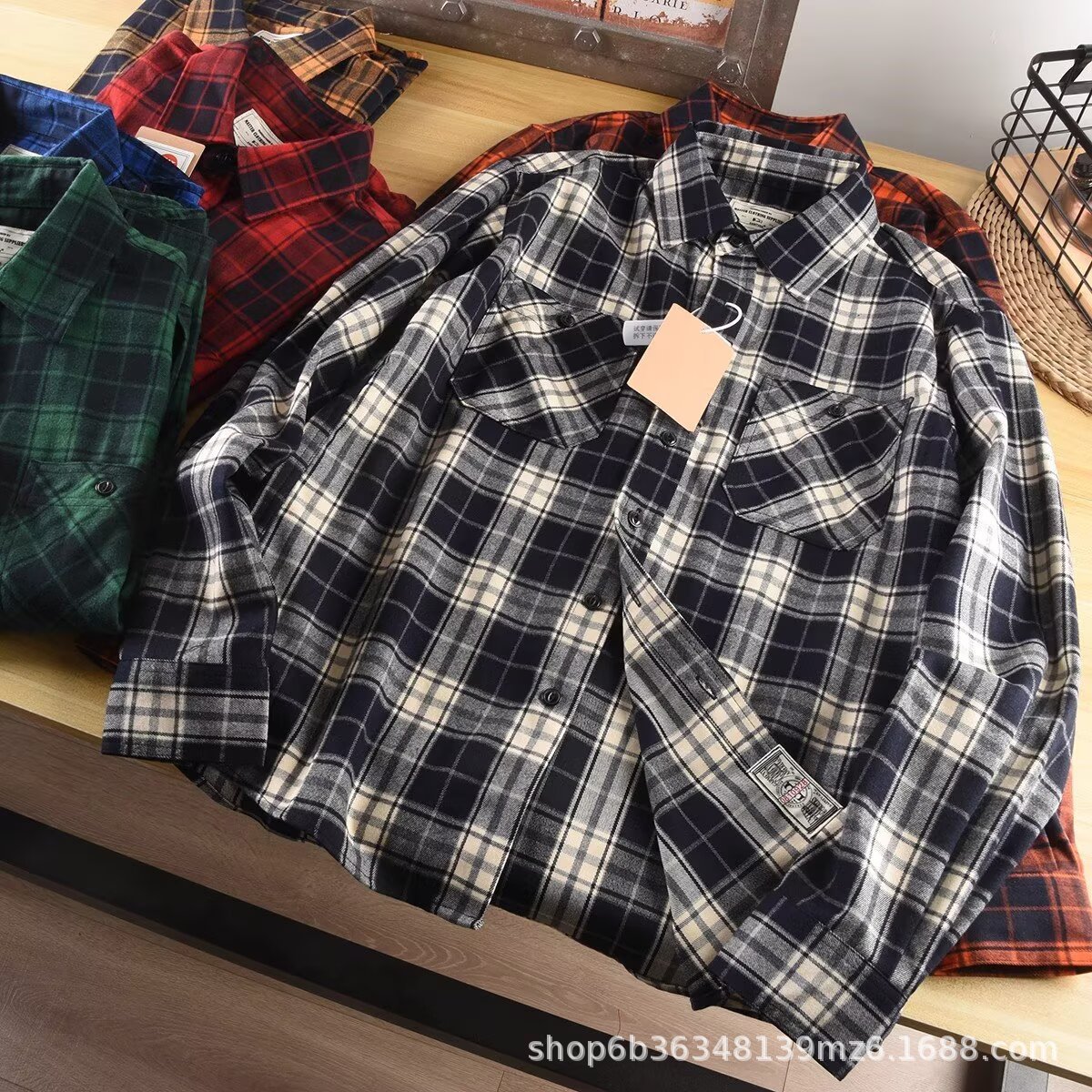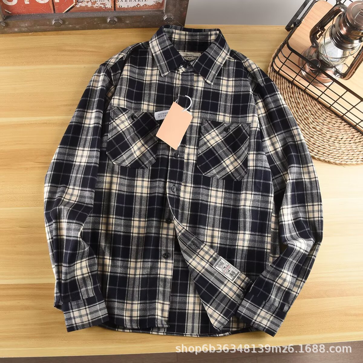 300g 헤비 샌딩 홍콩 스타일 레트로 체크 셔츠 남자 긴 소매 패션 브랜드 조커 루즈 셔츠 캐주얼 재킷스토어 가기