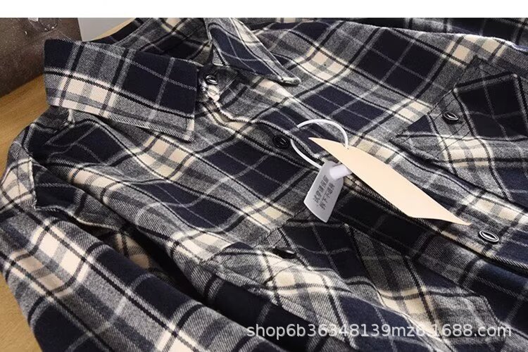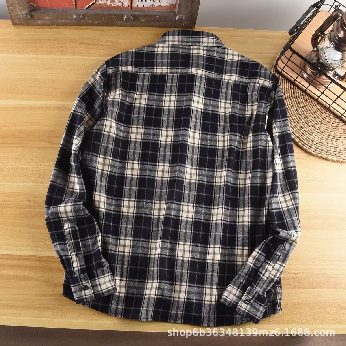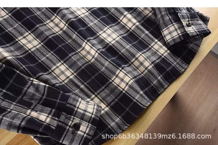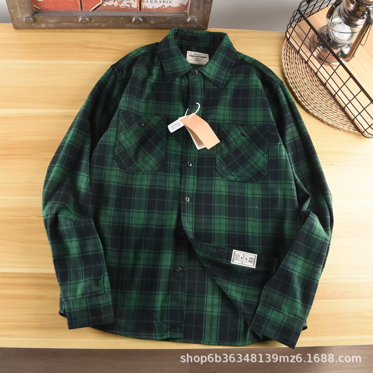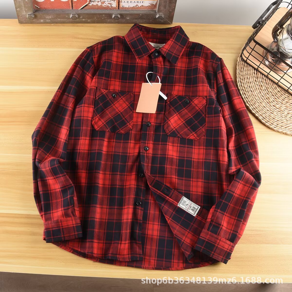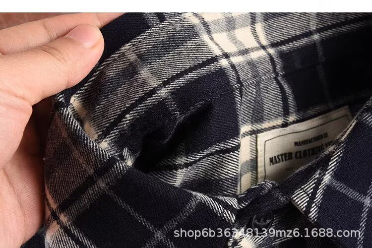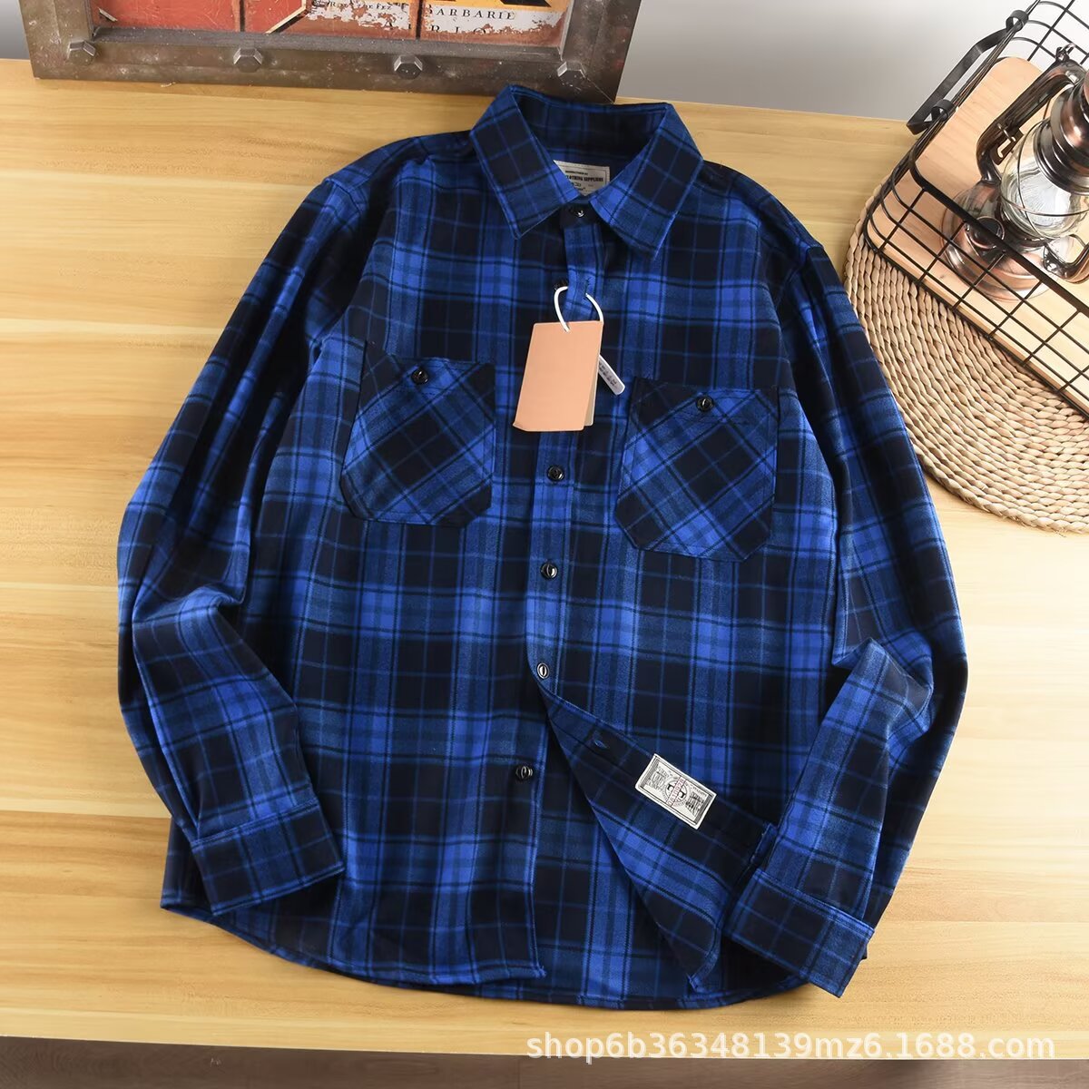 300g 헤비 샌딩 홍콩 스타일 레트로 체크 셔츠 남자 긴 소매 패션 브랜드 조커 루즈 셔츠 캐주얼 재킷스토어 가기