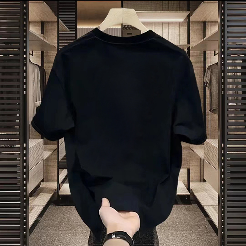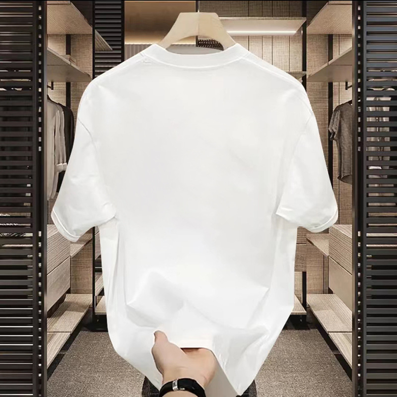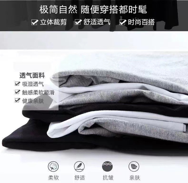 1688 여름 간단한 남자와 여자 올 매치 루즈 라운드 넥 하프 슬리브 티셔츠 탑 리브 퓨어 화이트 퓨어 블랙 티셔츠스토어 가기