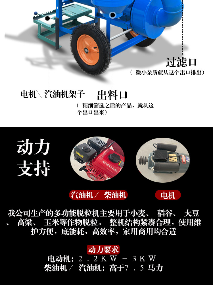 • 풀링 보조 장치 [가솔린 엔진 세트] 대형 다기능 탈곡기 + 거친 스크린 + 휠