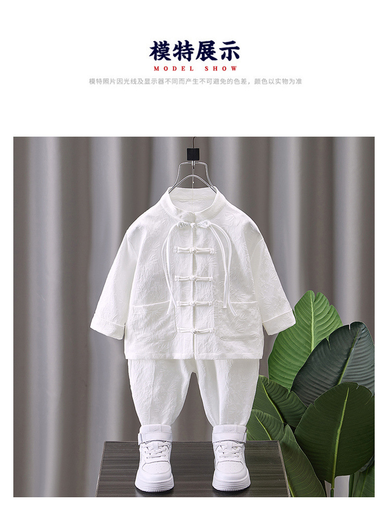 소년 한푸 중국 스타일 봄과 가을 얇은 세트 어린이 새로운 중국 당나라 세트 가을 유치원 실용 의류