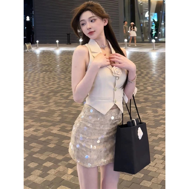 샤오 샹 스타일 꽃 세트 조끼 카미 솔 여성 여름 화이트 프랑스 스타일 로얄 자매 아름다운 우아한 탑