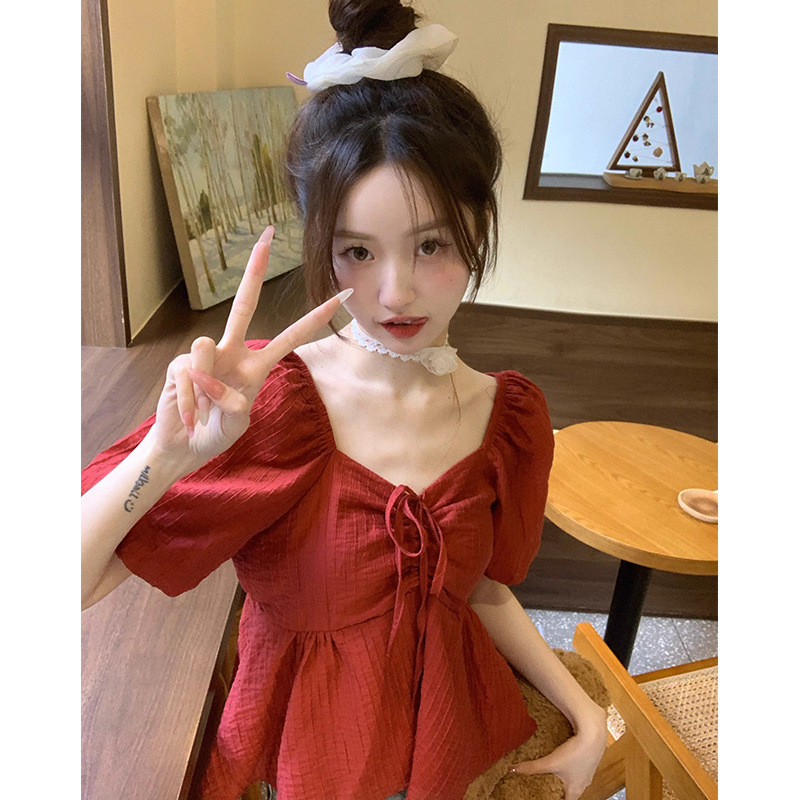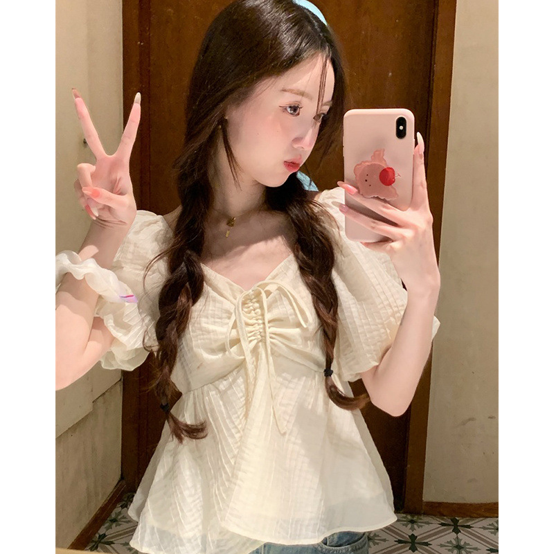 버블 슬리브 셔츠 여성 디자인 센스 틈새 짧은 여름 2024 새로운 프랑스 스타일 세련된 짧은 소매 셔츠스토어 가기
