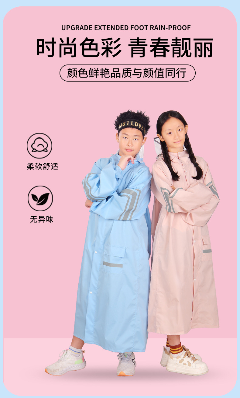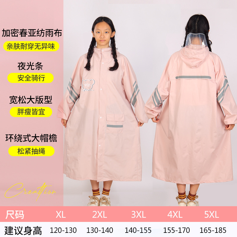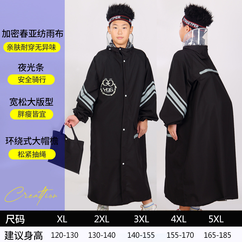 남자와 여자를위한 보이지 않는 학교 가방을 가진 대학 스타일 어린이 비옷 중년 및 큰 아이들 고등학생 판초 긴 방수 의류
