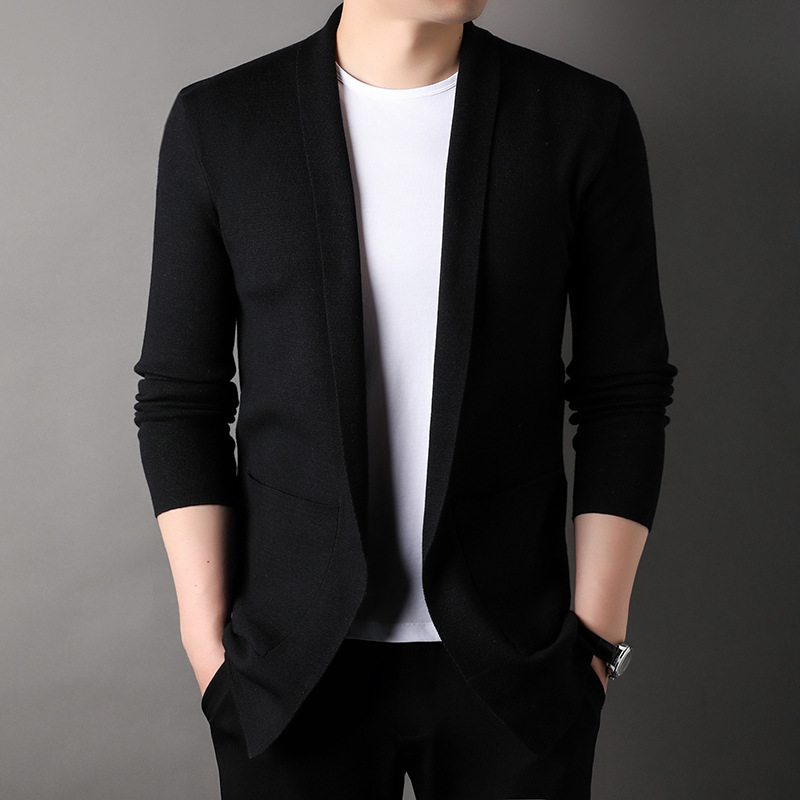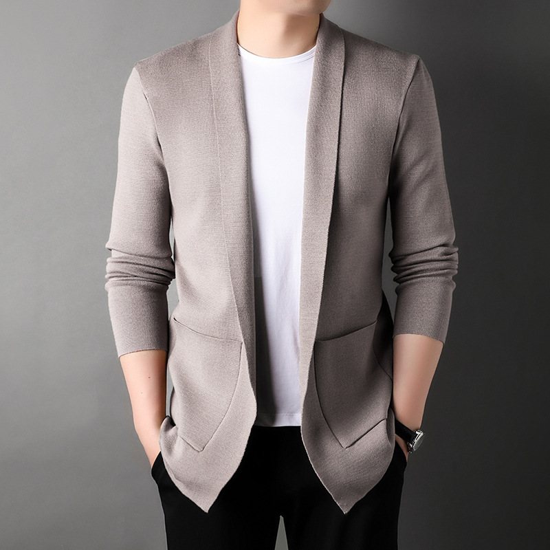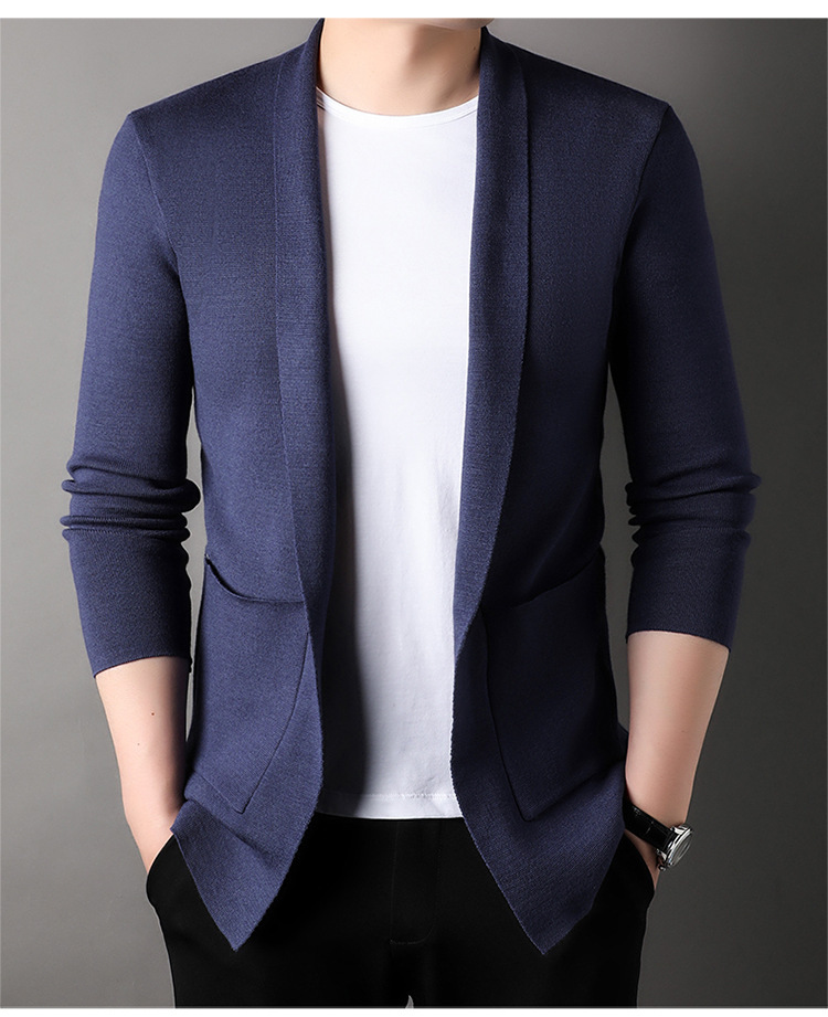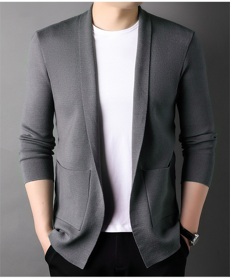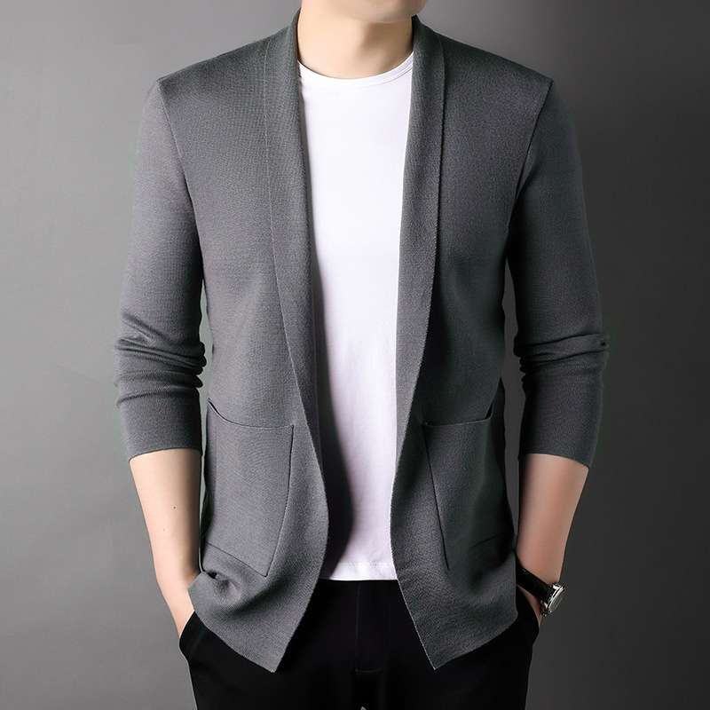 남성 봄과 가을 카디건 스웨터 남성 비즈니스 캐주얼 포켓 남성용 루즈 울 니트웨어
