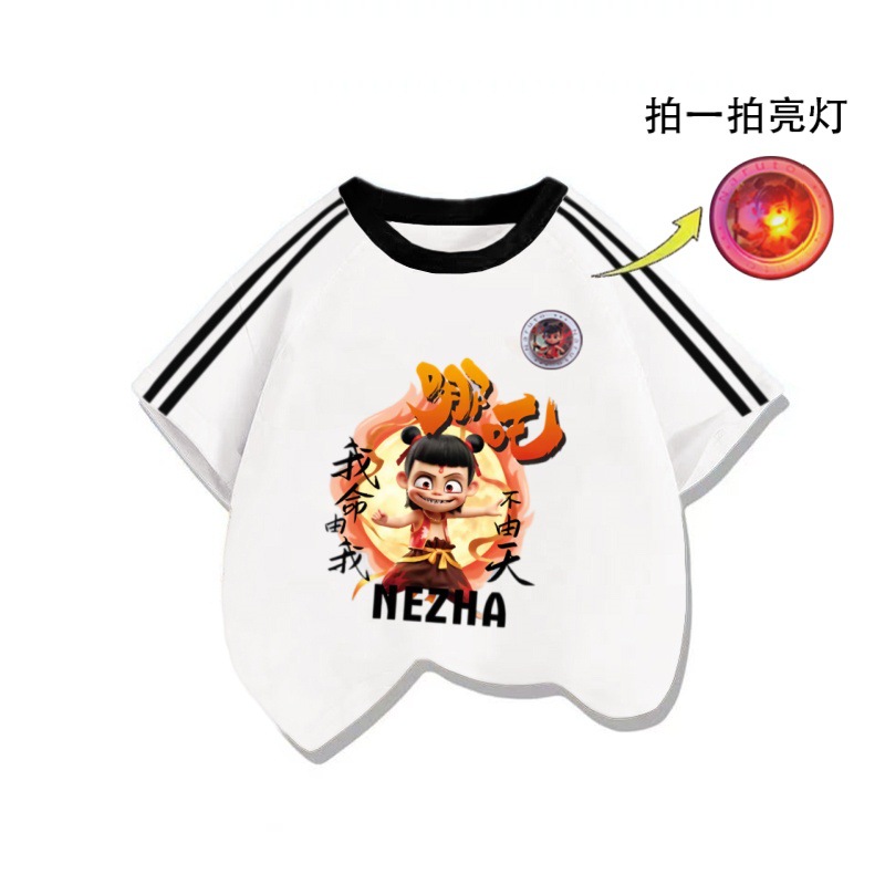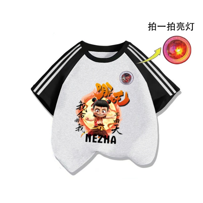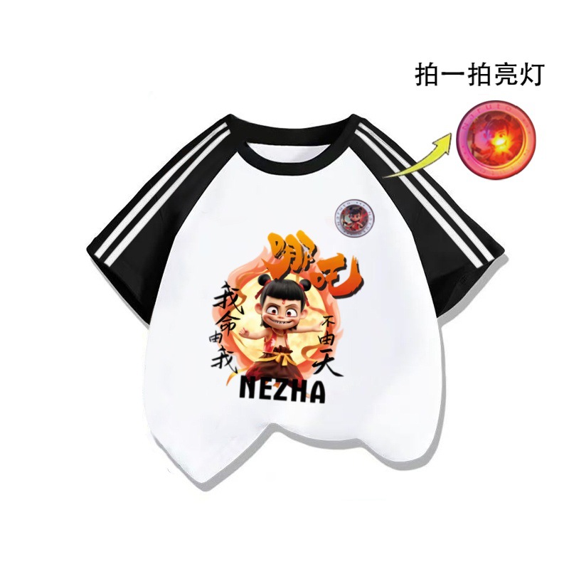 Nezha 3 바 짧은 소매 면화 대비 색상 Raglan Loose Boys 'T 셔츠 탑 여름 새로운 순수 면 아동복 Zhongda스토어 가기