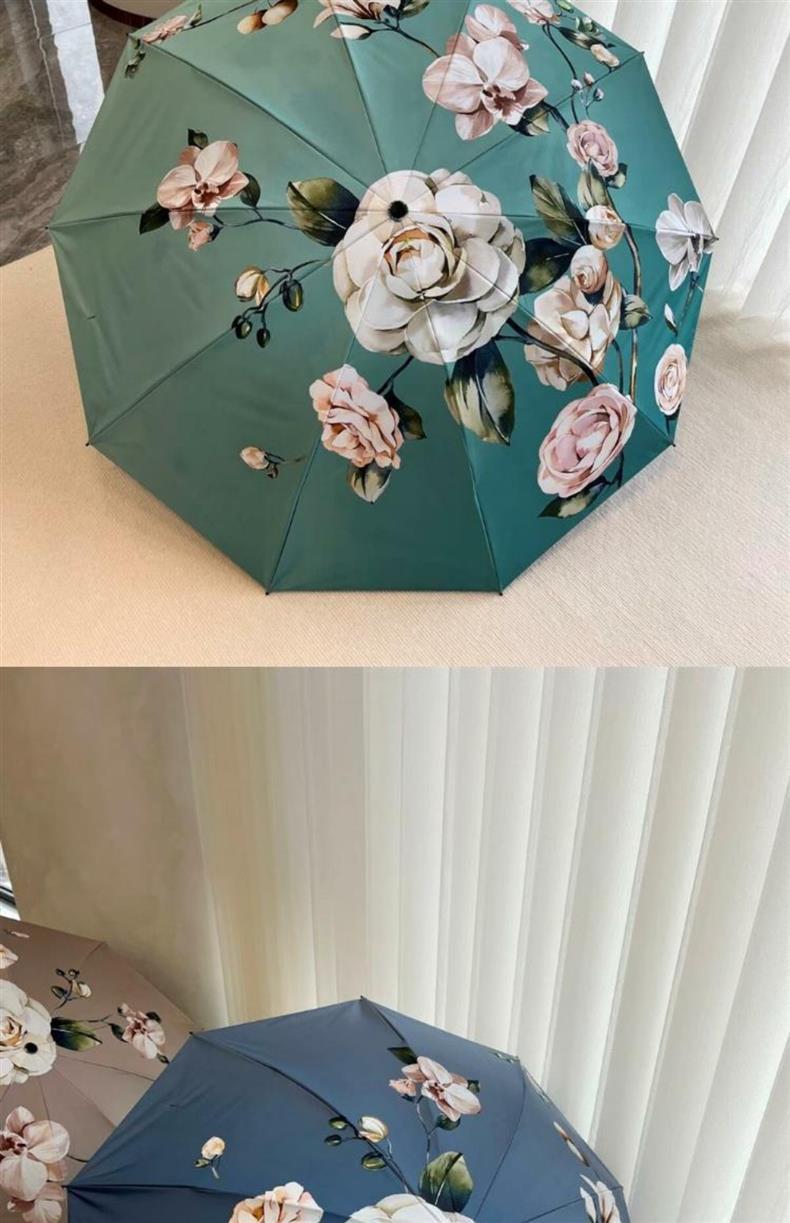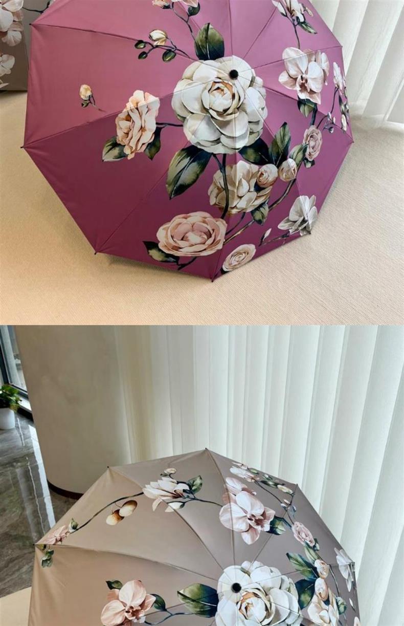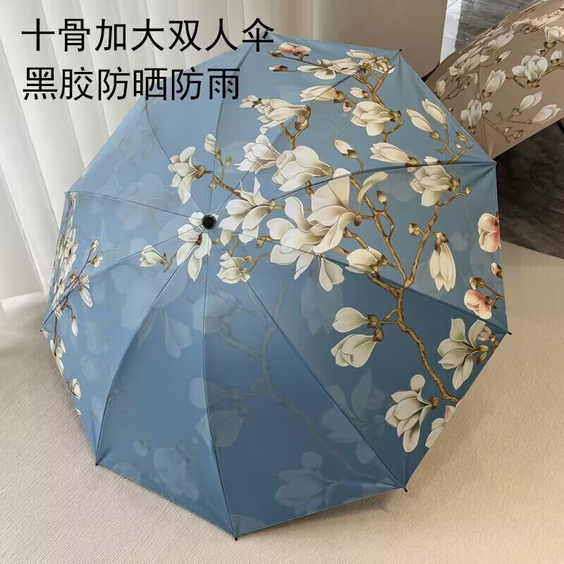 더블 사이즈 강화 우산 검은 접착제 써니 우산 햇빛 자외선 방지 10 본 태양 우산 레트로 폴딩