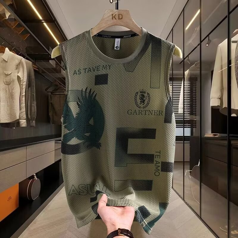 아이스 실크 여름 남성 조끼 프린트 트렌디 민소매 루즈핏 신상 통기성 베스트 얇은 스포츠 탑